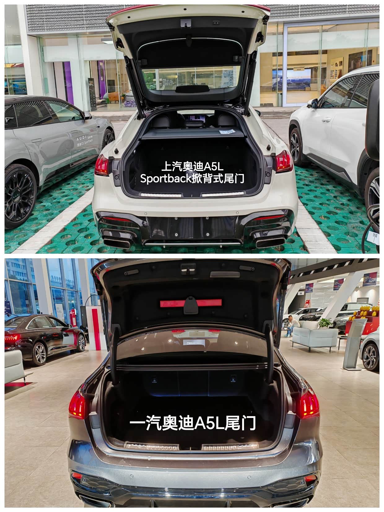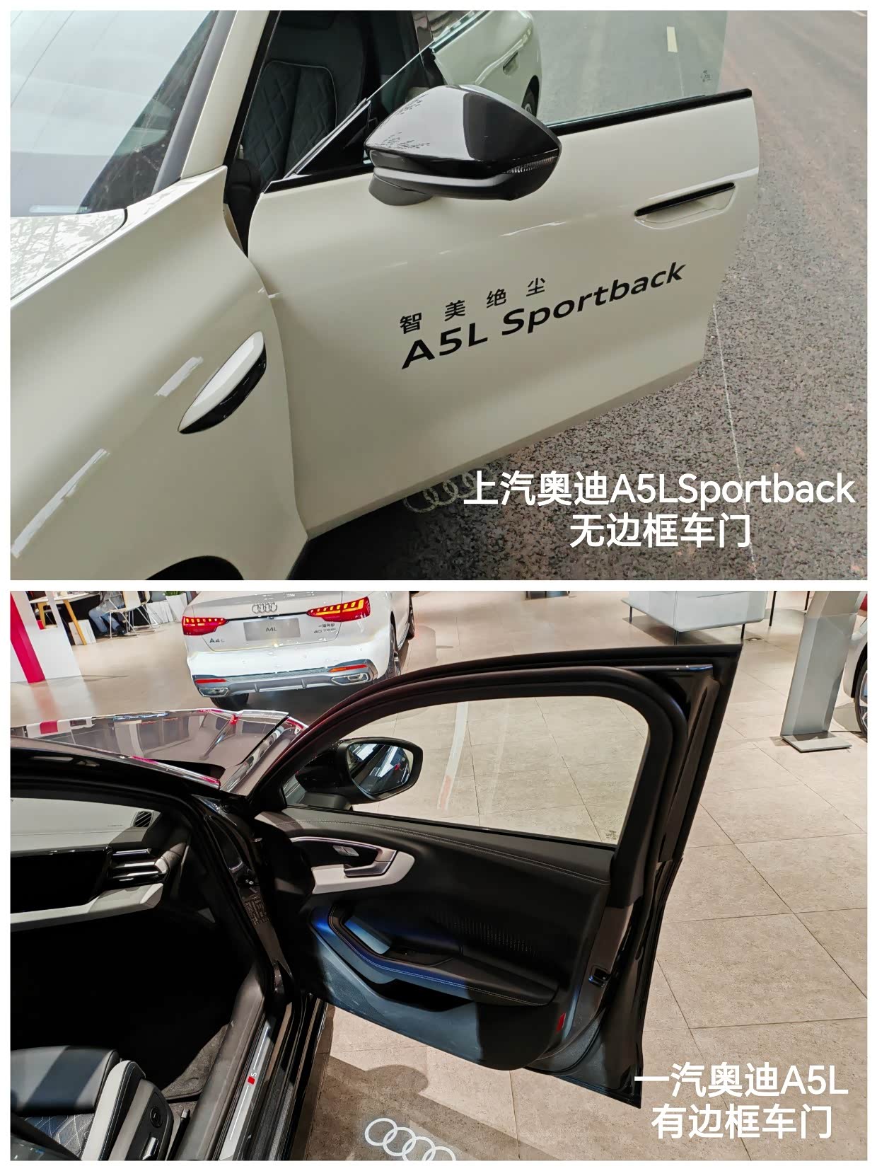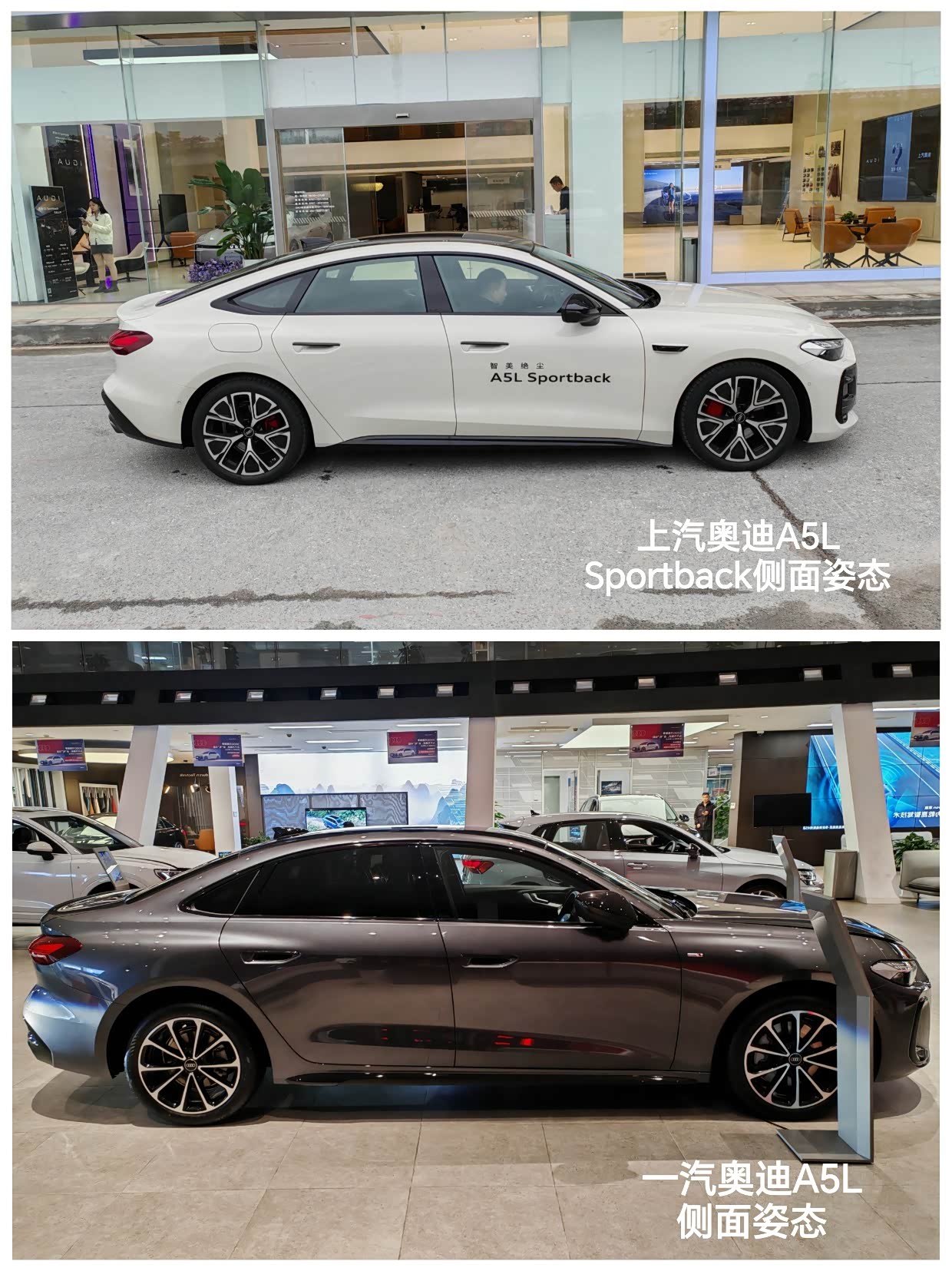 在朋友的推荐下,推荐我去看看奥迪A5L,经过我网上查询该辆车的时候,发现这款车有2个制造厂商,一个是上汽奥迪的A5L Sportback,另一个是一汽奥迪A5L,在上网和我真实探店感受来说:我发现以下不同的点:因为车的内饰配置几乎一模一样,这里不再赘述,最大的区别是外观、智能辅助驾驶的有无、底盘韧性的调教。