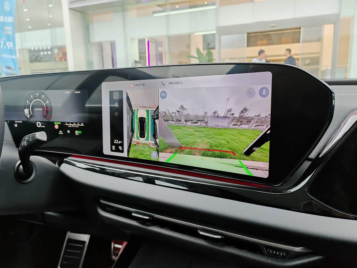 还有多区域的氛围灯显示,有个细节就是打转向灯的时候,前挡风左右下方会出现绿色灯条的闪烁,大多数盲区辅助,亮灯在镜子上,这款车在后视镜框左侧有个比较显眼的方块亮黄灯,提醒将会更加明显。