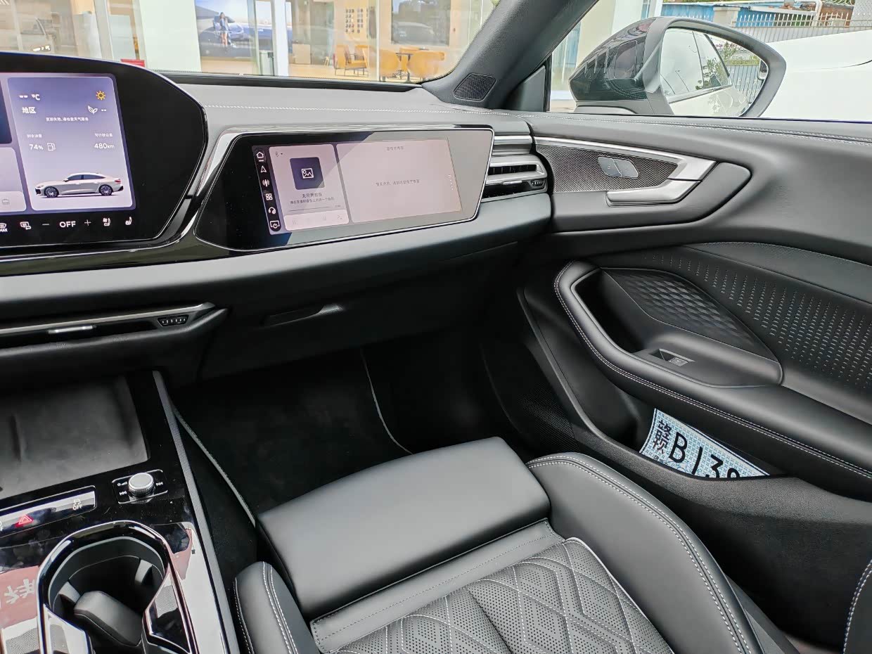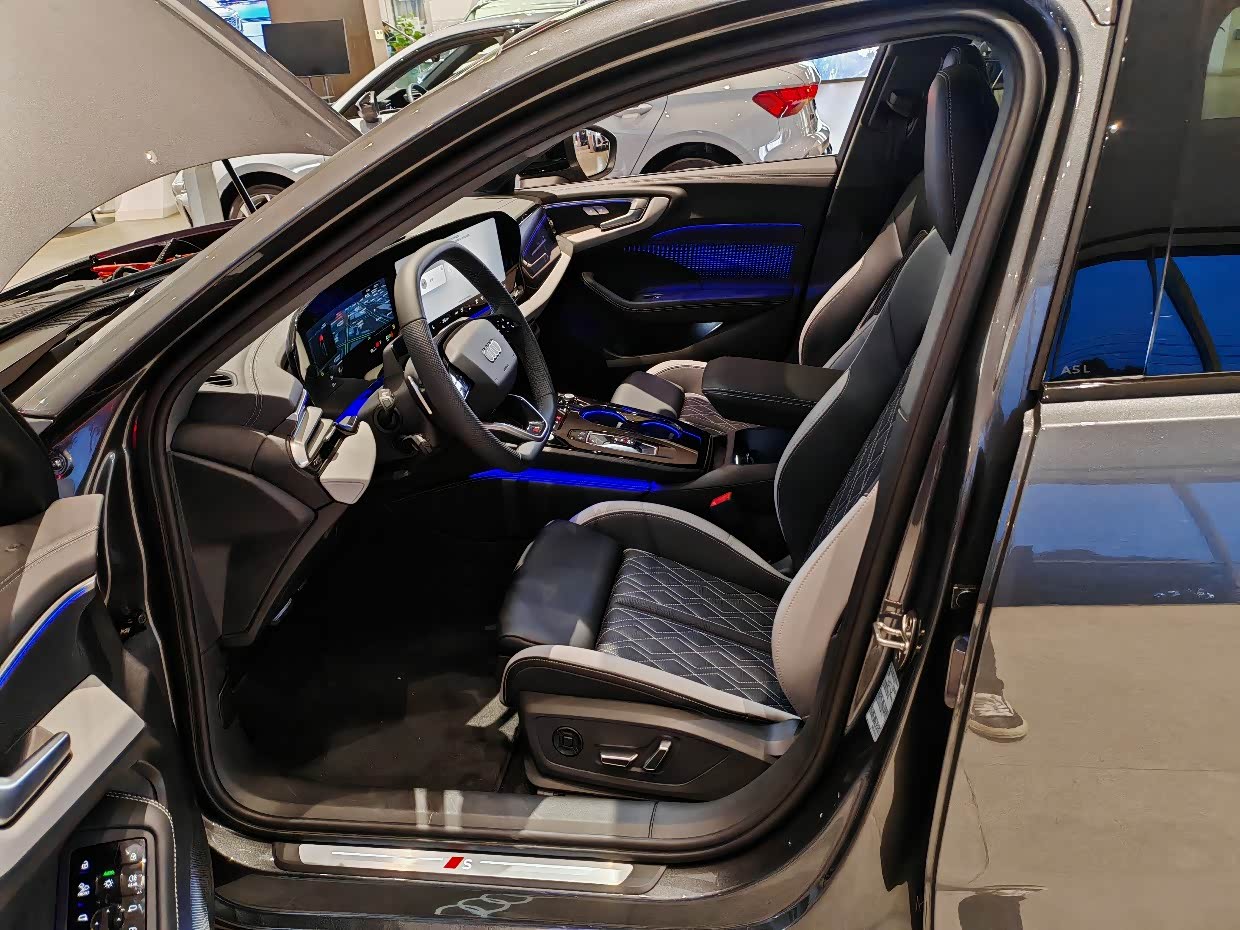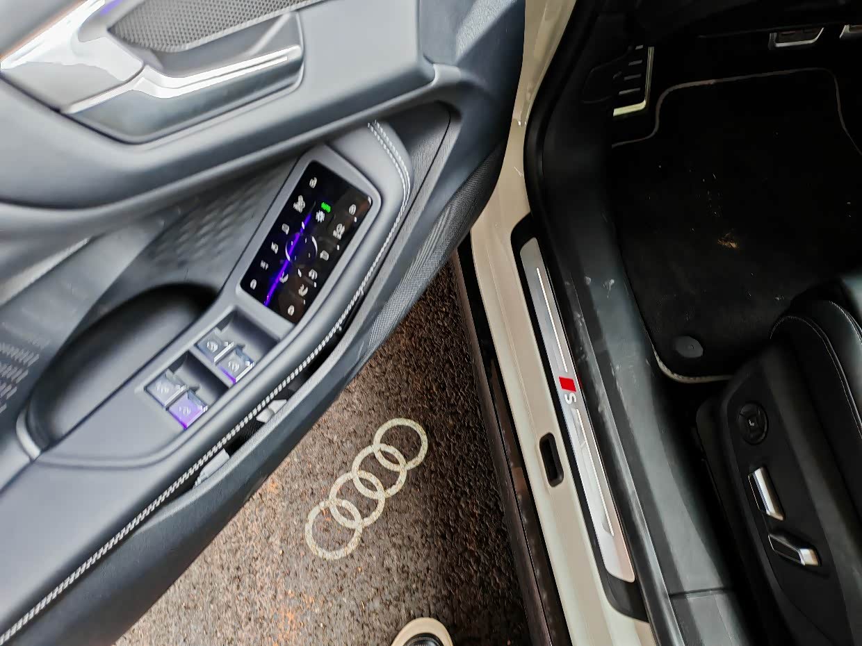 拉开车门的第一刻,我能看到地面上的奥迪logo的迎宾灯,高级感瞬间拉满。