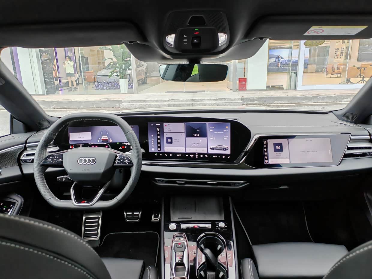 再看到内饰的布局,能感知到奥迪对于“高级感”的独到理解。我试驾的车型是单层玻璃的无边框车门,对静谧性要求更高的可以加500选装双层夹胶玻璃。