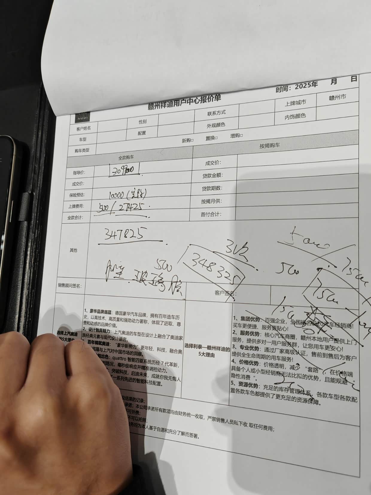 这款车的指导价格为33.99万,厂家给了补贴后的价钱为30.99万,保险预估1W左右,上牌费用为500,购置税为27425元,500元的车窗升级(前排双层,后排隐私),落地价格为348325元,赠品有脚垫,玻璃膜,还有3次基础保养。如果还有旧车,还可以参与国家的报废补贴,价格有点超预期,想着再等等官方的后续价格,另外听说这是奥迪的第一款油车搭载的华为的乾崑智驾,至于说稳不稳定,还得经过市场至少3个月甚至半年的验证, 所以我打算再观望观望。
