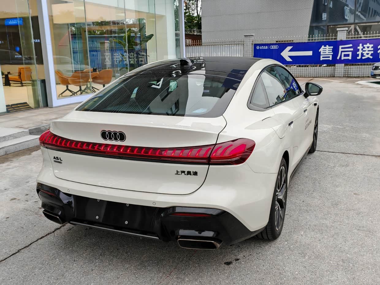 经典的家族式前脸配合锐利的矩阵式LED大灯(奥迪“灯厂”出品,必属精品)以及那标志性的贯穿式腰线,共同勾勒出无懈可击的车身比例。最迷人的无疑是那道从B柱开始急速下坠的溜背曲线,它让加长的车身没有丝毫臃肿,反而增添了几分蓄势待发的动感。