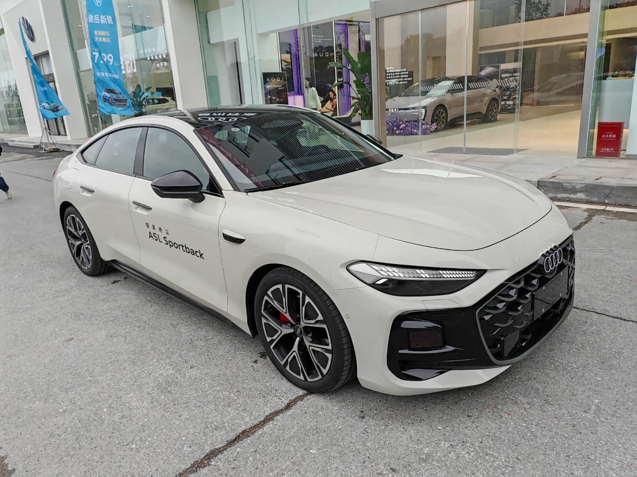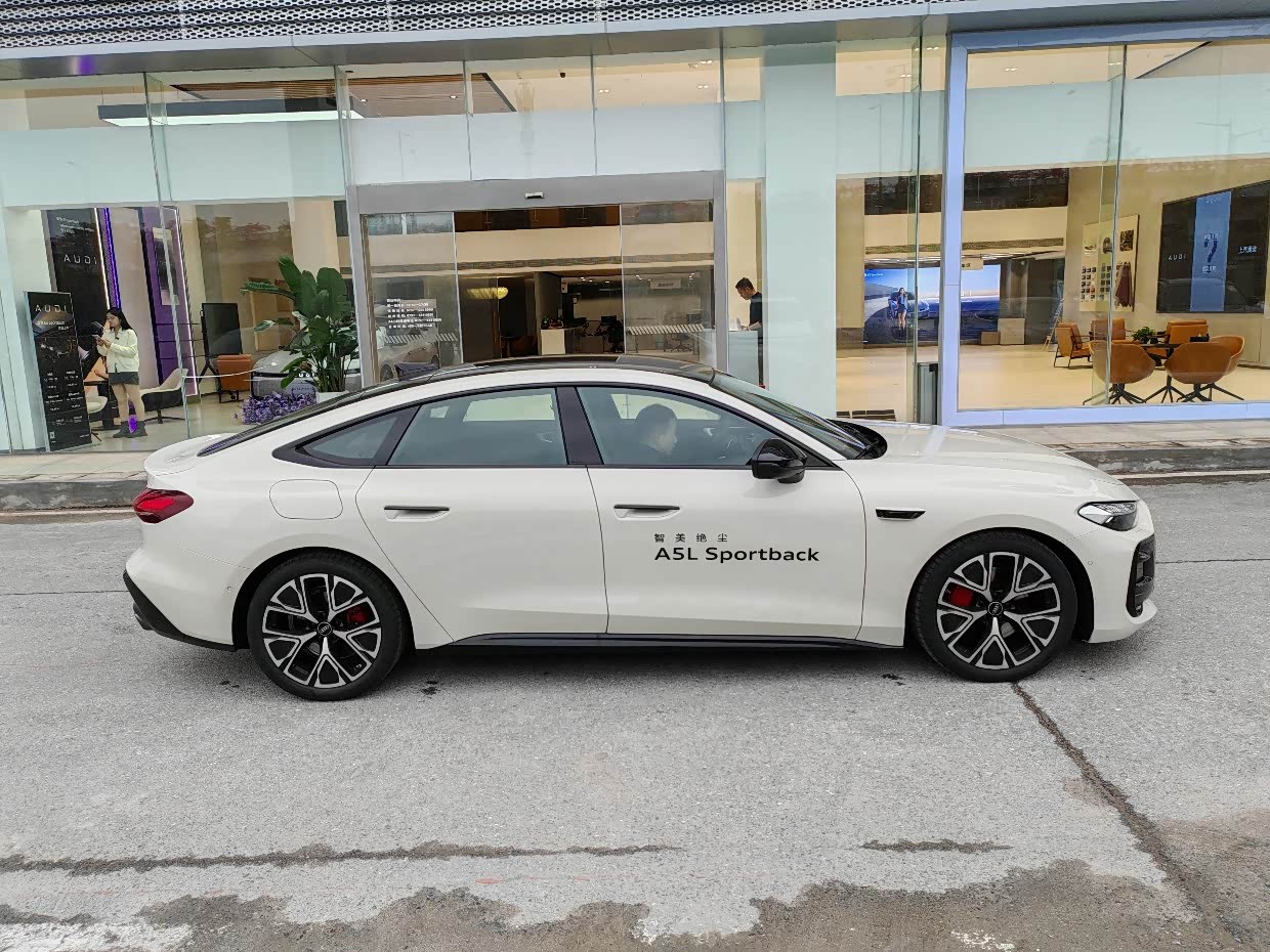 当时去店里的时候没有展车,试驾的车型是2026款TFSI 150KW 智领quattro型号,在外面我看到了它,A5L Sportback帅气低趴的轿车外形下,它更像是一位穿着合身米色的西装的绅士,线条流畅而克制。