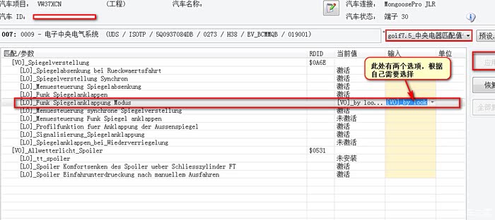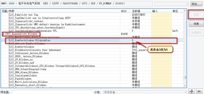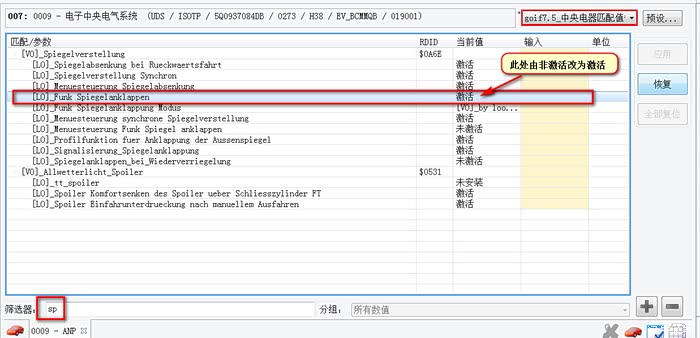 说明一下,修改0009中央电气系统匹配值后还需要进行“所有匹配值复位”,否则修改是不生效的。下面说下具体过程,这个极少有人描述的。