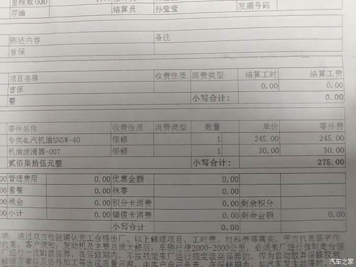 使用手册上说两个月或三千公里首保,于是周末维修站走起。