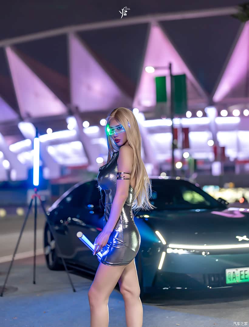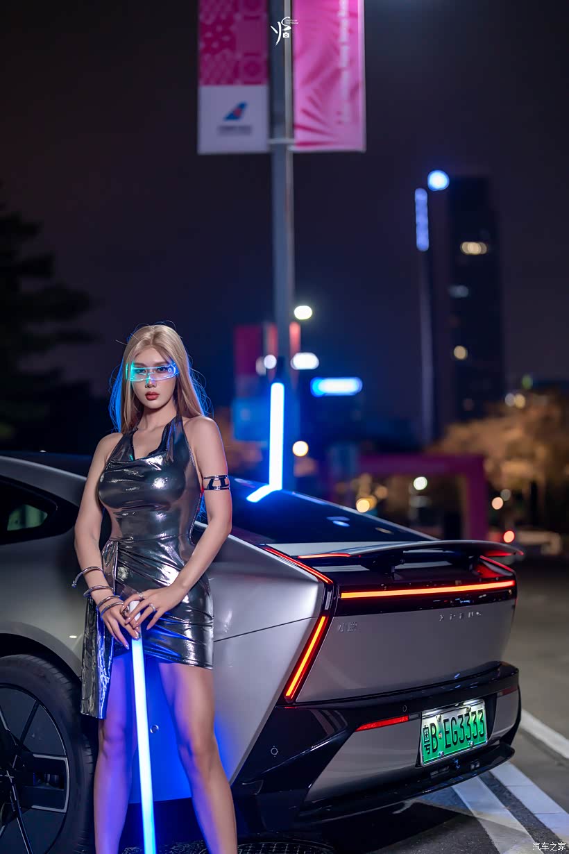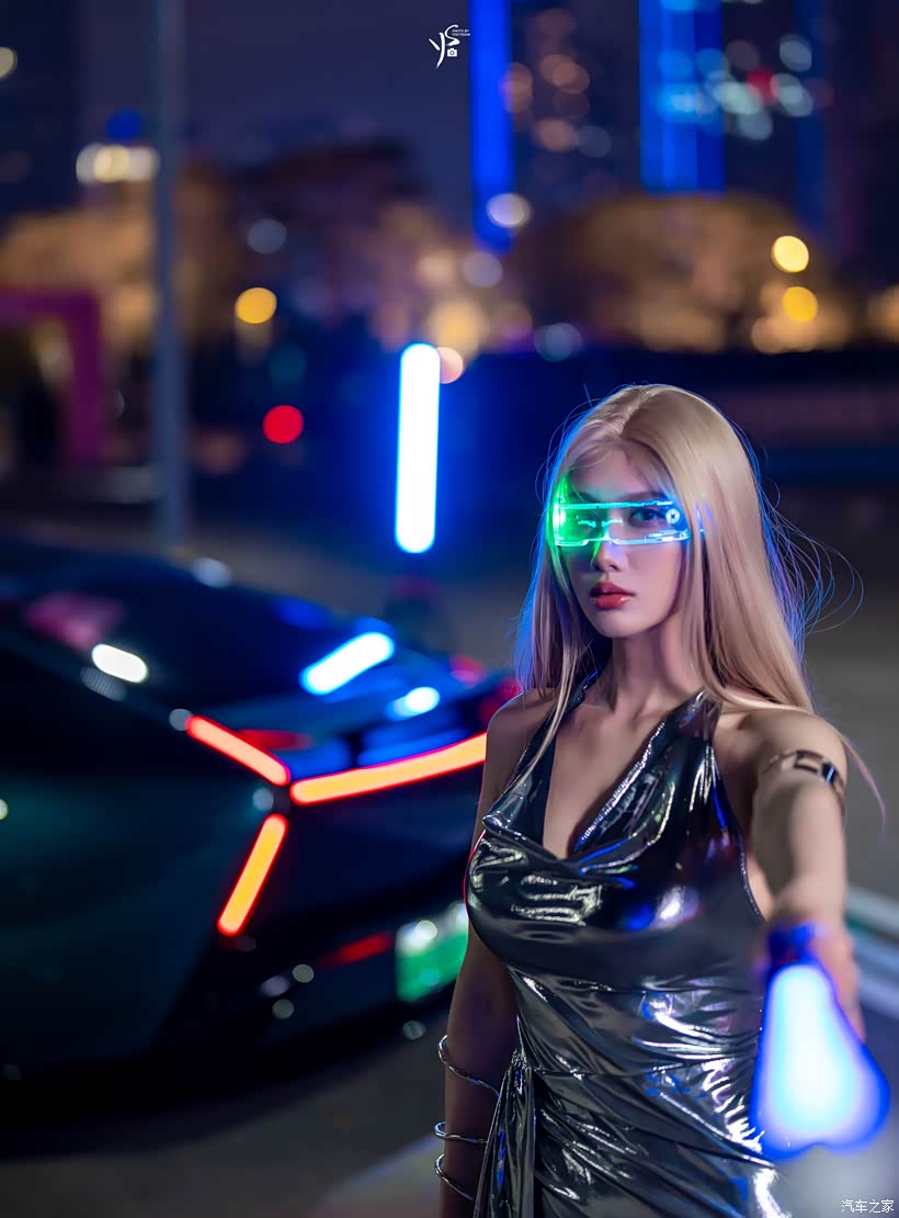 所以今天我就开着我的新P7和小姐姐来拍赛博朋克续集来了。