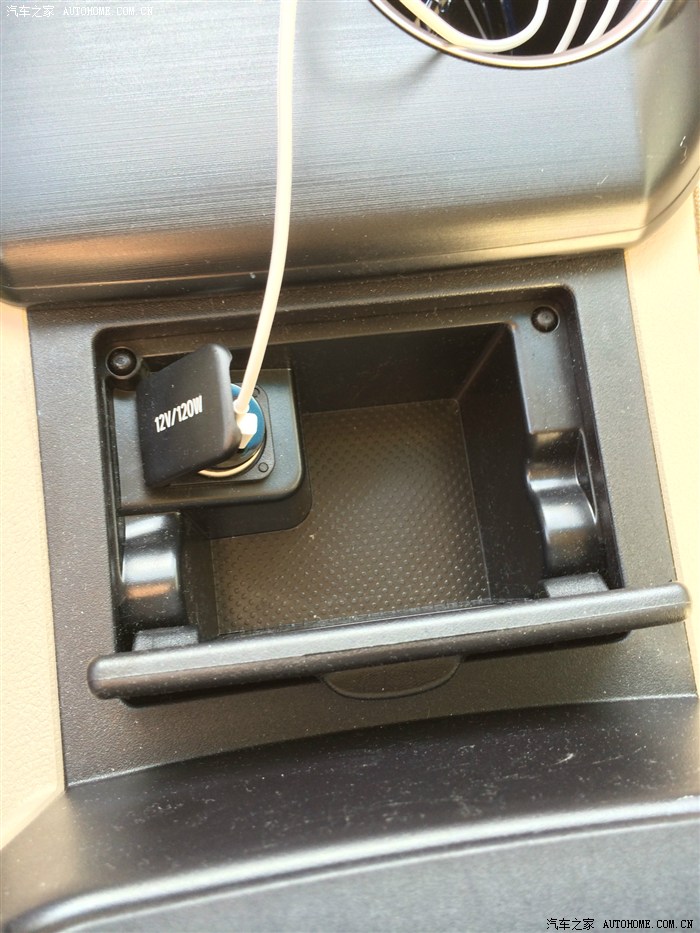 中控底下储物格很深,里面一个USB借口一个点烟器,都可以充电