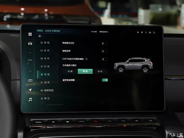 1、打开车载中控屏,点击屏幕左上侧的车辆图标。