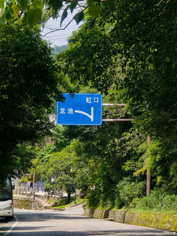 下山后道路分叉,一条道路通往虹口,漂流、玩水、踩水麻将等等。在周末时段,玩水的人较多,所以我选择另外一条车流较少的龙池方向。