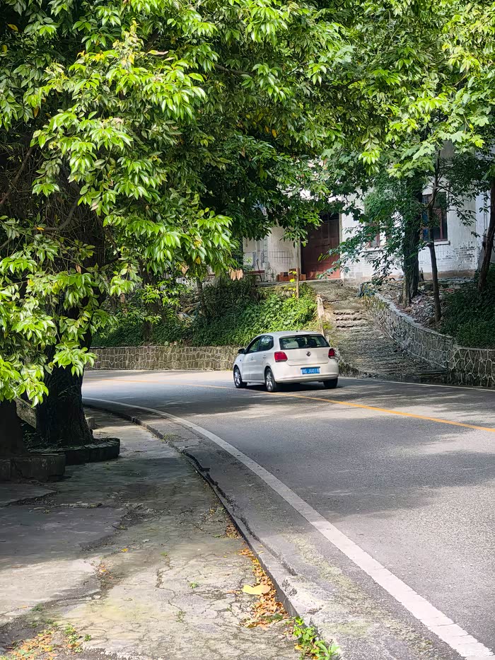 这是一条被自然眷顾的公路——茂密的树冠交织成天然的遮阳伞,阳光只能零星地洒落,即便盛夏烈日当空,车内依然能感受到山风送来的清凉。