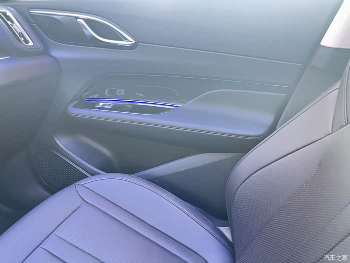 车门板用料讲究,手能触及的地方基本都是软性材质,全车车窗支持一键升降,带有防夹手功能。
