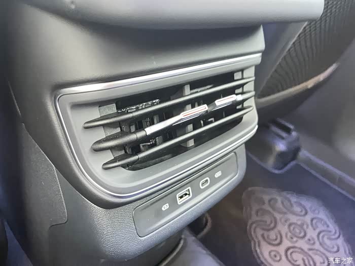 后排配备了独立的空调出风口,下方有两个手机充电接口,对后排乘客很友好。但是地板中间的凸起是有一点不满意的!