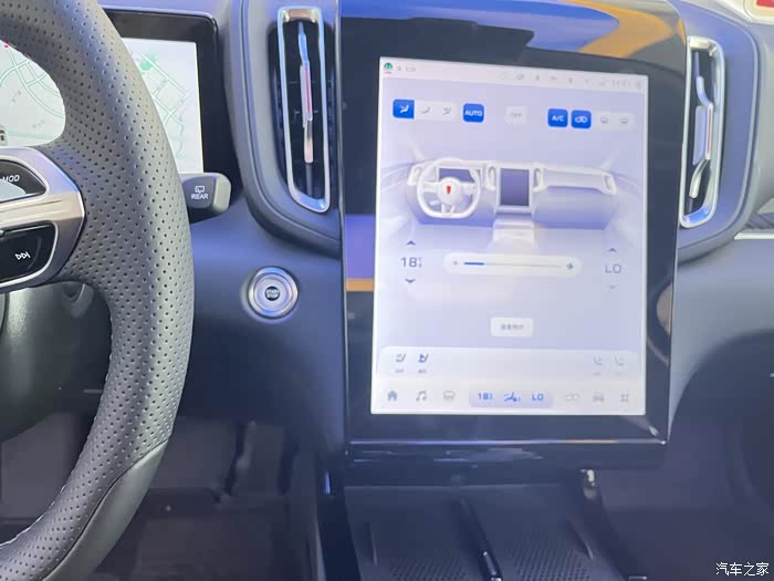 空调控制区域位于屏幕下方,保留了实体旋钮和按键,操作起来很方便,温度和风量调节旋钮手感扎实。