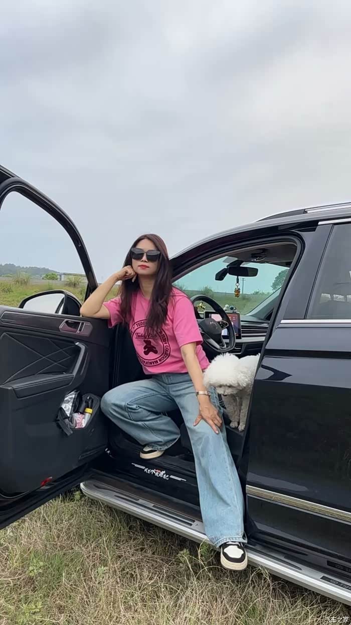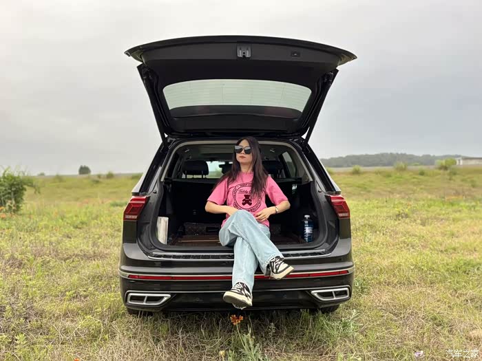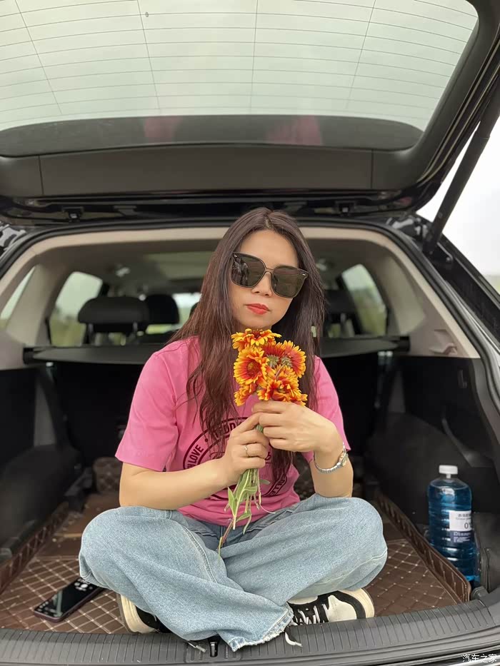 最后打开宽敞的尾箱,老婆轻松地盘腿坐在后备箱里,脸上洋溢着惊喜的笑容。途观L的后备箱空间十分宽敞,不仅能轻松容纳许多物品,还能让人舒适地坐在里面。她时而手捧现摘的花束,悠闲地看向远方;时而高抬手臂,摆出有趣的姿势。后备箱的空间优势在这组照片中展现得淋漓尽致,也让我们对爱车的实用性有了更深的认识。