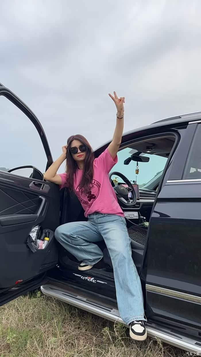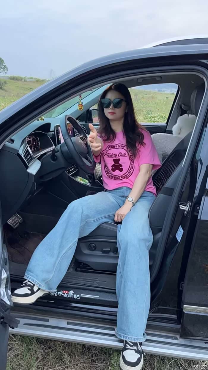 首先以途观L的驾驶舱为背景,老婆优雅地打开车门,侧身向外,摆出各种迷人的姿势。她时而轻轻扶着车门,眼神温柔地看向镜头;时而调皮地歪着头,一只手搭在车门上,另一只手比出可爱的手势,尽显俏皮。途观L的内饰设计简洁大方,质感十足,与老婆的优雅气质相得益彰,每一张照片都仿佛是一幅时尚大片。