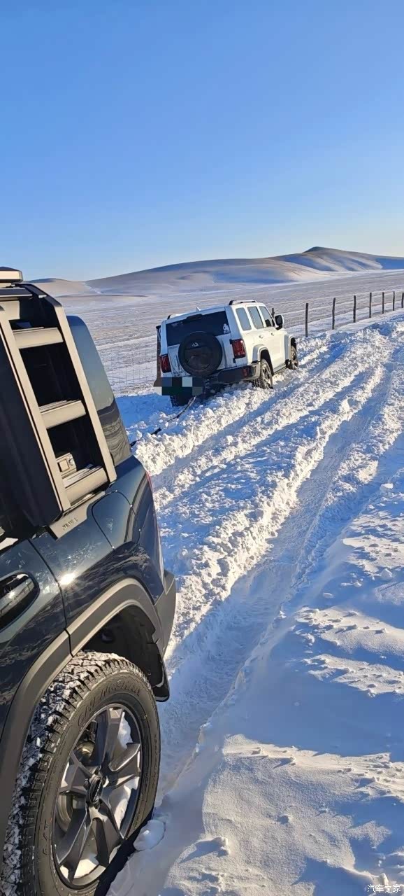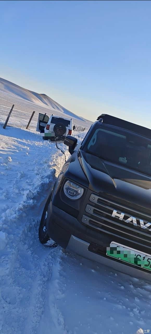 到达赤峰第二天,我们去往克什克腾旗进入工地,一路上还救援了一辆坦克300hi4t,这事儿很逗,因为第一次来这种环境比较恶列的地方,这两坦克300hi4t本来跟我是一前一后,我在前,他在后,但我俩没对讲机,这地方也没信号,跑着跑着我发现看不到他了,然后坐等右等,咋滴都是没等着,然后有折返回去才发现他侧滑溜出去,不得不说,猛龙动力还是可以的,坦克300hi4t这家伙近3吨,地面全是冰雪,我这一顿狂拽,才给他拽了出来。