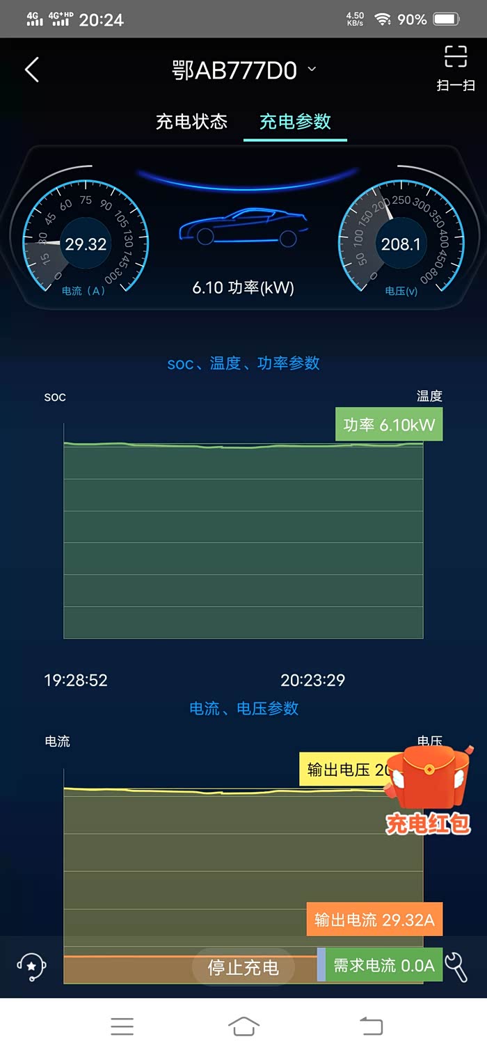 快充电流快充电流快充电流快充电流63分钟充了41.5度电,还算比较满意,慢充时间慢充大概6kw左右,上下吧整体来说,这车快充挺快的,刚开始接近180a电流,一小时可以充40-50度电,估计充满的话80-90分钟可以把64度全部充满,到百分之80以后还有60多a,挺不错的。。慢充大概6kw左右,上下徘徊这车64.2度电慢充大概9-11小时充满7kw充电桩的话