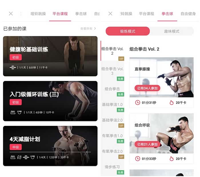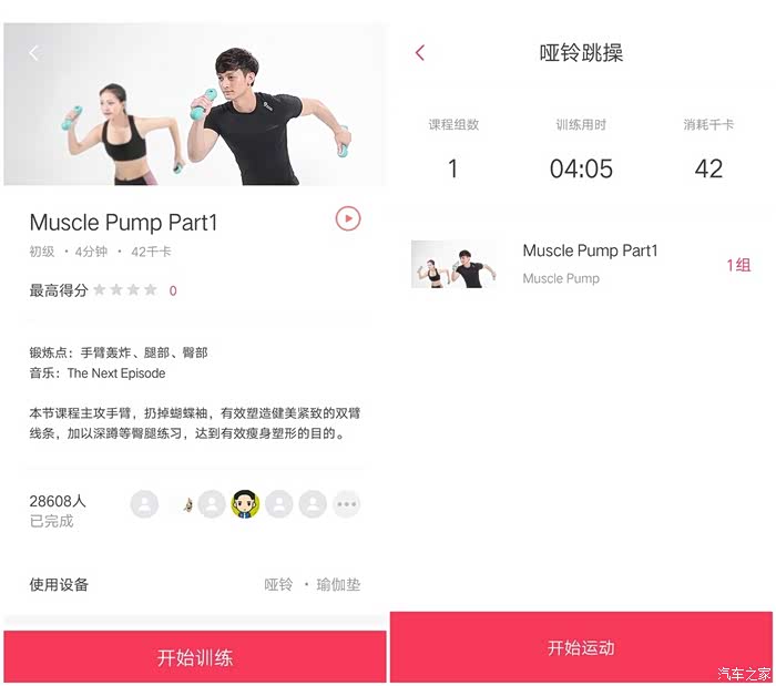 6.在APP里选择智能哑铃训练科目,开始健身!