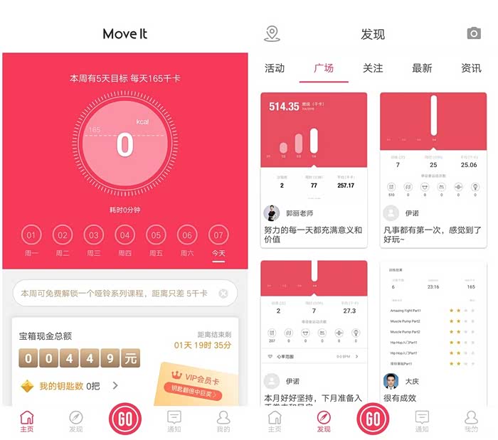 APP容量72MB,不小,打开后才知道,原来Move It是一个运动平台,里面可不光智能哑铃一个项目