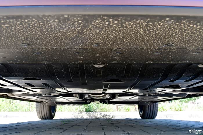 相比于1.5T版本,我觉得2.0T的车型悬架调教更运动,这也完美配合了比较运动的外观设计。把车升起来就能够看到02的前后轴都有加强杆,而且调教风格也比较运动。在过小沟沟坎坎的时候几乎没什么跳动,加上19寸的轮毂以及235/45的轮胎,能够提供很好的抓地力和转向支撑。