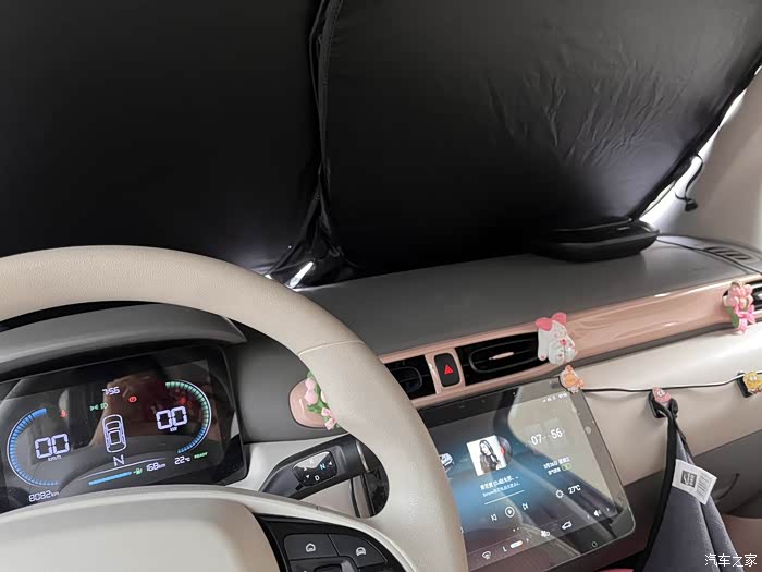提前5分钟用手机APP打开空调,下楼时车里已经凉飕飕的(耗电不到2%)。反光遮阳板往挡风玻璃一罩,车外40℃,车里稳定在26℃。花20几块买的蕾丝窗帘往侧窗一拉,既挡阳光又防窥视。