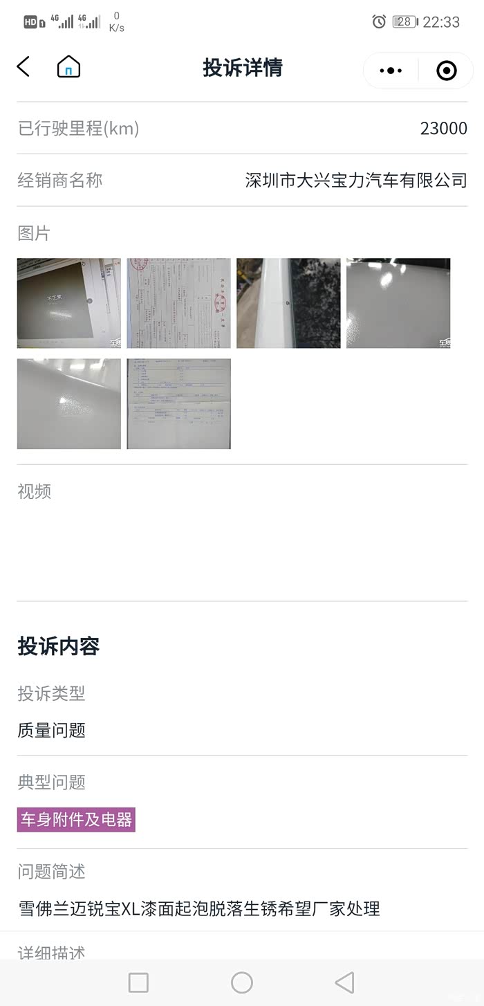 购买经销商深圳大兴宝力汽车有限公司,现在退网了,希望上汽通用雪佛兰厂商协助处理,每次投诉结果就是厂商邀请进站,我已多次联系雪佛兰厂商400客服,也去了很多次4S店维修站和很多家4S店维修站,都说要反馈上报厂商处理,各种拖延不处理,再次找到购车经销商,就告诉我厂商不给理赔,要求自费处理,在这件事漆面问题我已经费了不少时间,邀请进站结果要求我自费喷漆,严重影响我误工损失,申请赔偿,再不处理下一步曝光-记者-315-法律程序