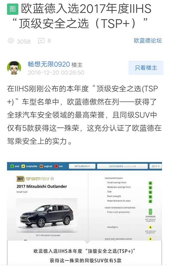 安全系数好像没有人提出来过哦。CX5的安全系数是A级评定,欧蓝德没有达到。