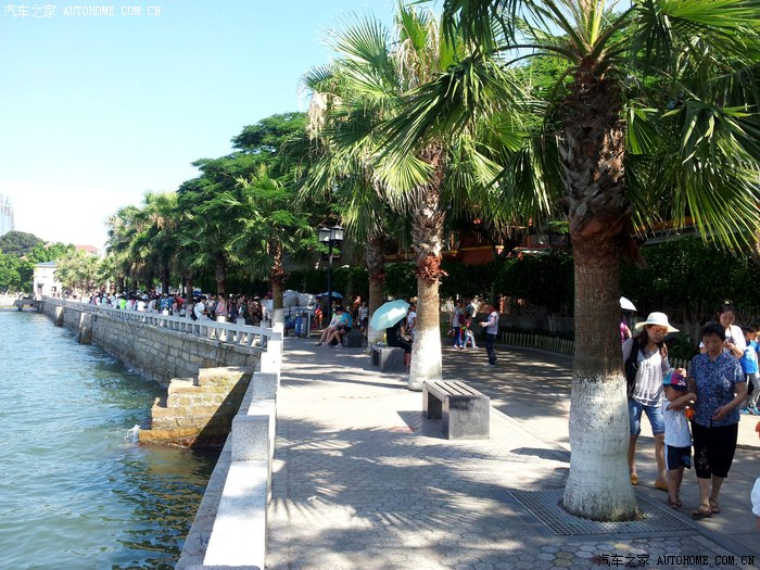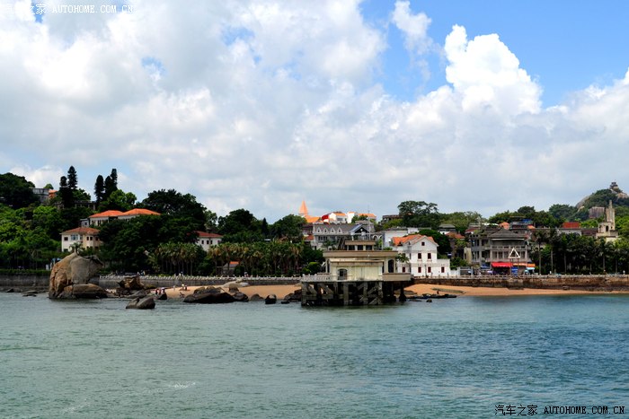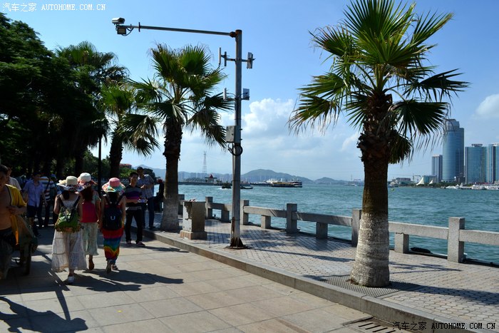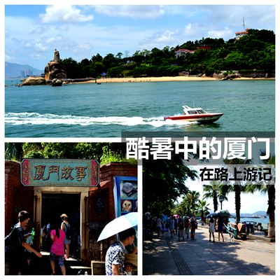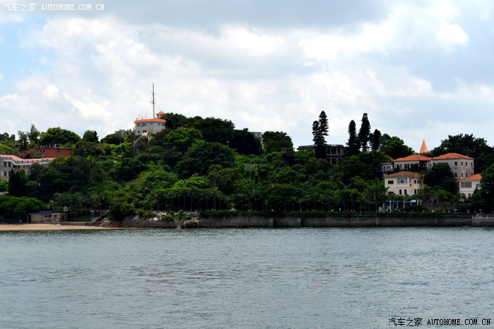 从金门岛回到码头,我们采纳了小伙子的建议,在车上随便吃点东西就乘渡轮登上了鼓浪屿,小雨过后,天气开始晴朗炎热,沿着岛上的椰林小路和万国建筑的楼宇间,在岛上走了一小圈。鼓浪屿是一个浪漫之地,岛上建筑风格迥异,各国风情建筑都有,是所谓情侣度假和浪漫邂逅之所,号称艺术之城,钢琴之城,岛上游人很多,我们走的浑身是汗,闲游一个多小时后,再次登船离开了这里,汗流浃背回到车上,此时车上显示的外面气温42度。