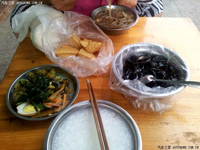 早餐也是在早市附近吃的,这个是什么东西忘记了,应该是一种植物加工出来的,拌着白糖加点开水吃的。