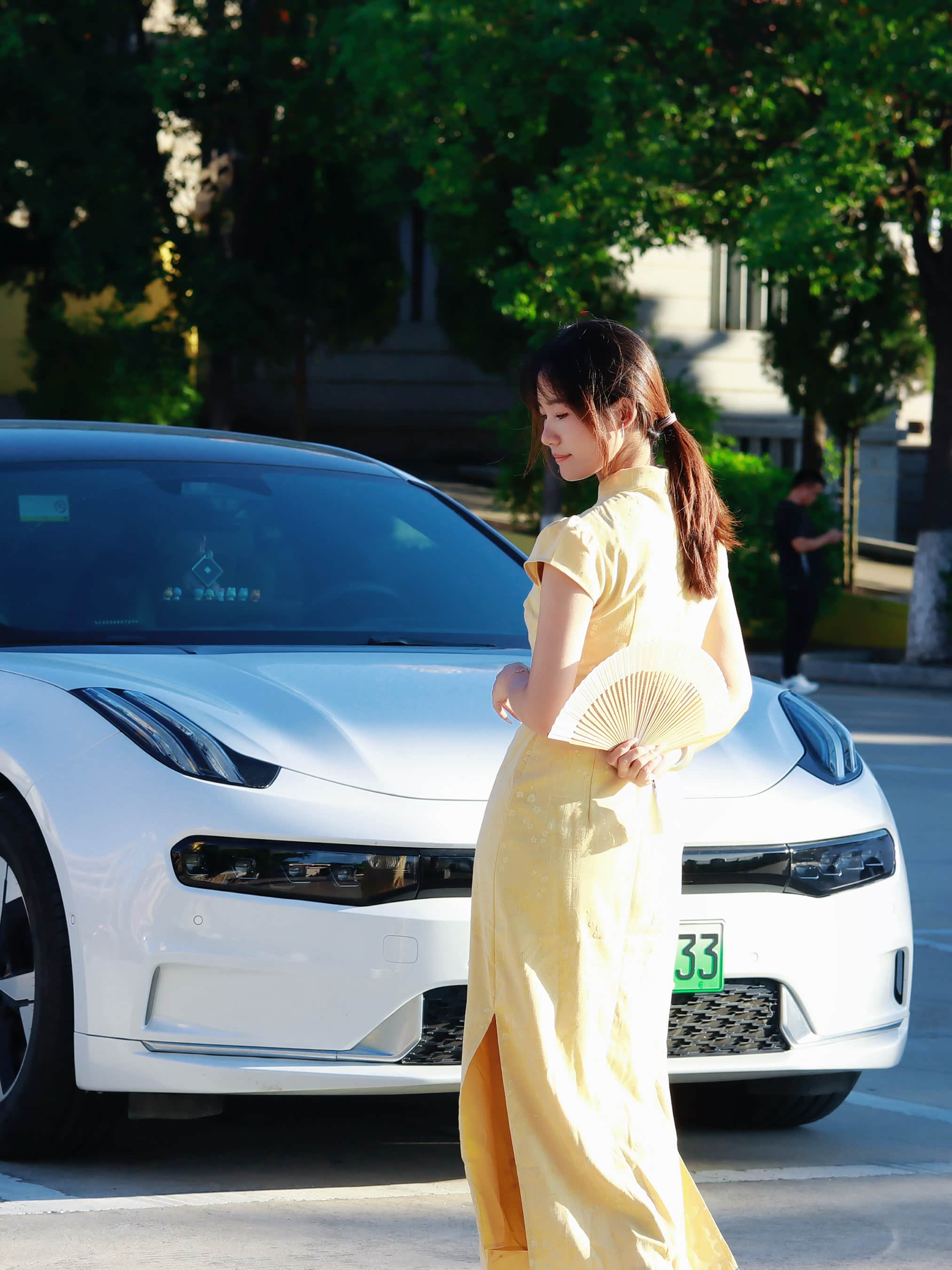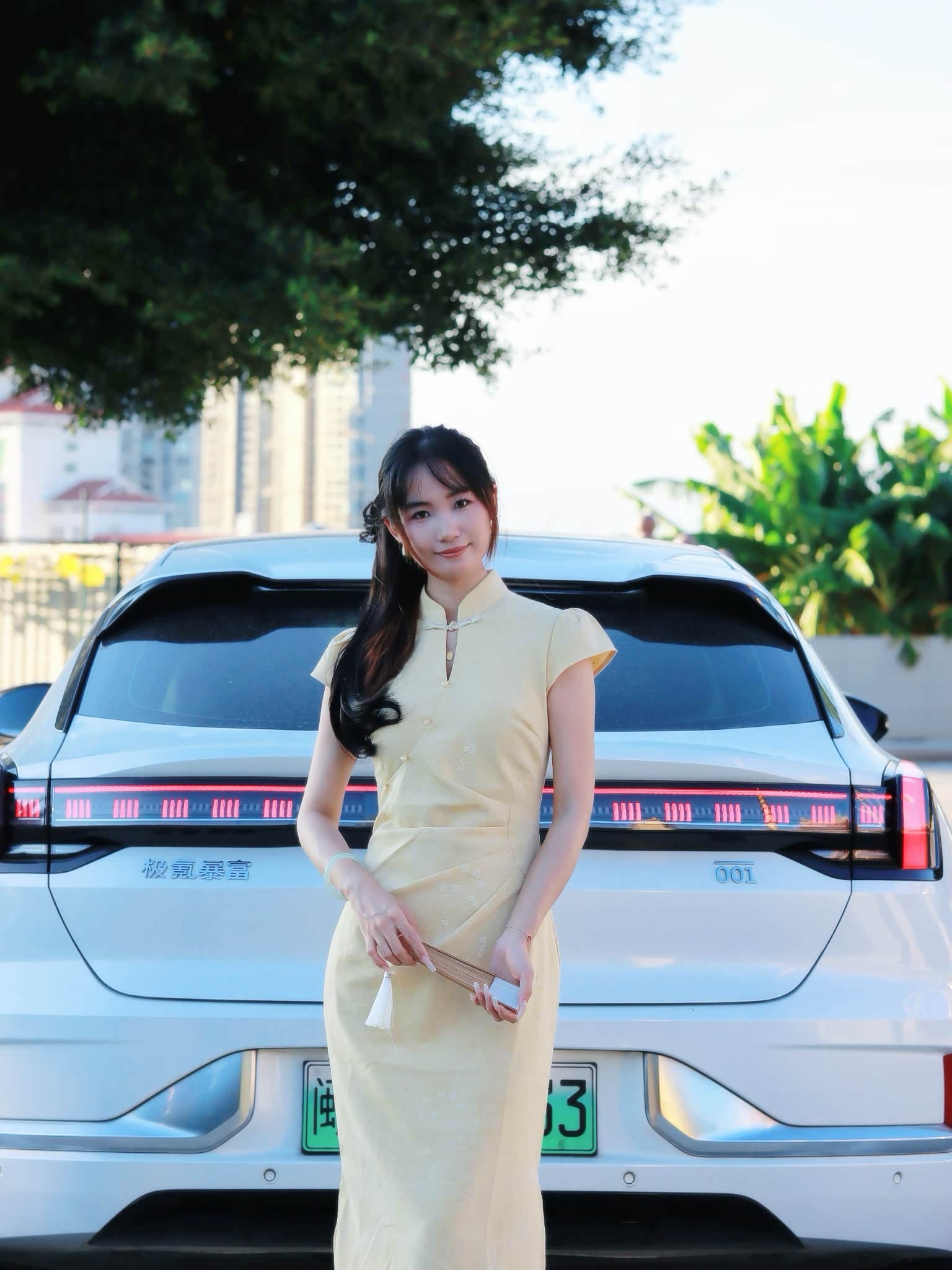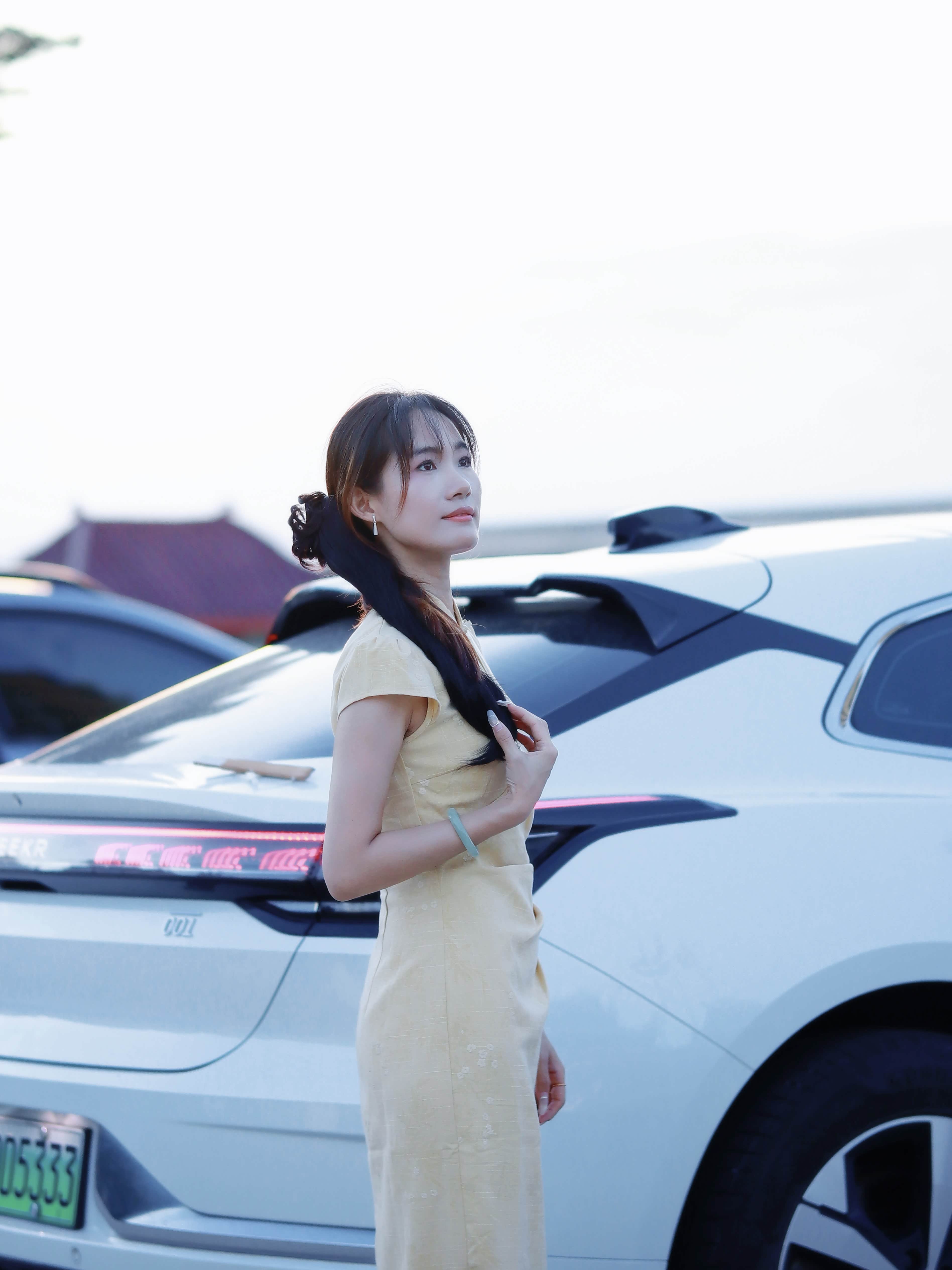 2、想要显腿长?一定要试试轻轻靠在车门边,一条腿微微往前伸,身体稍微侧一点。女生都懂,这个姿势yyds!秒变大长腿~