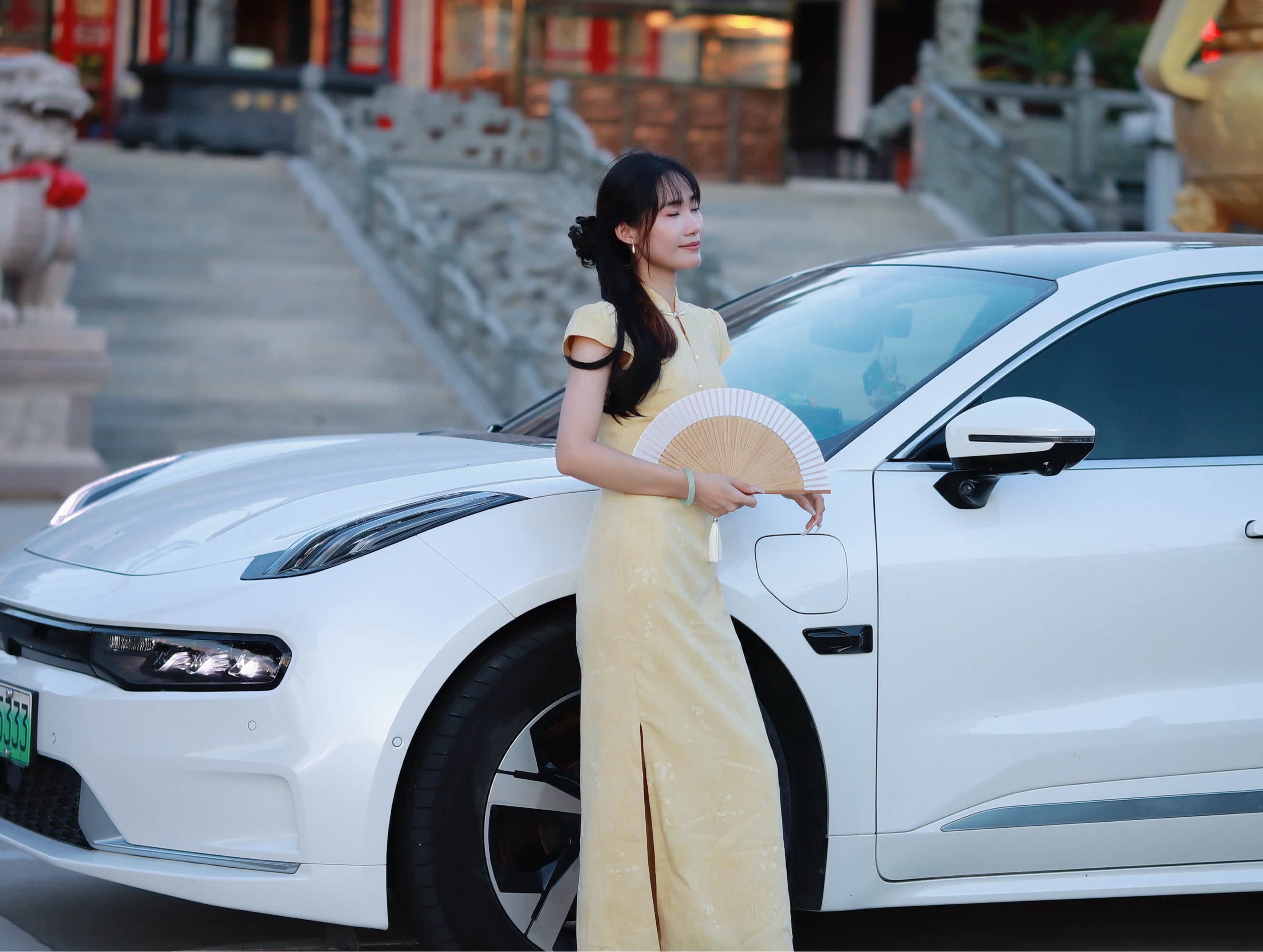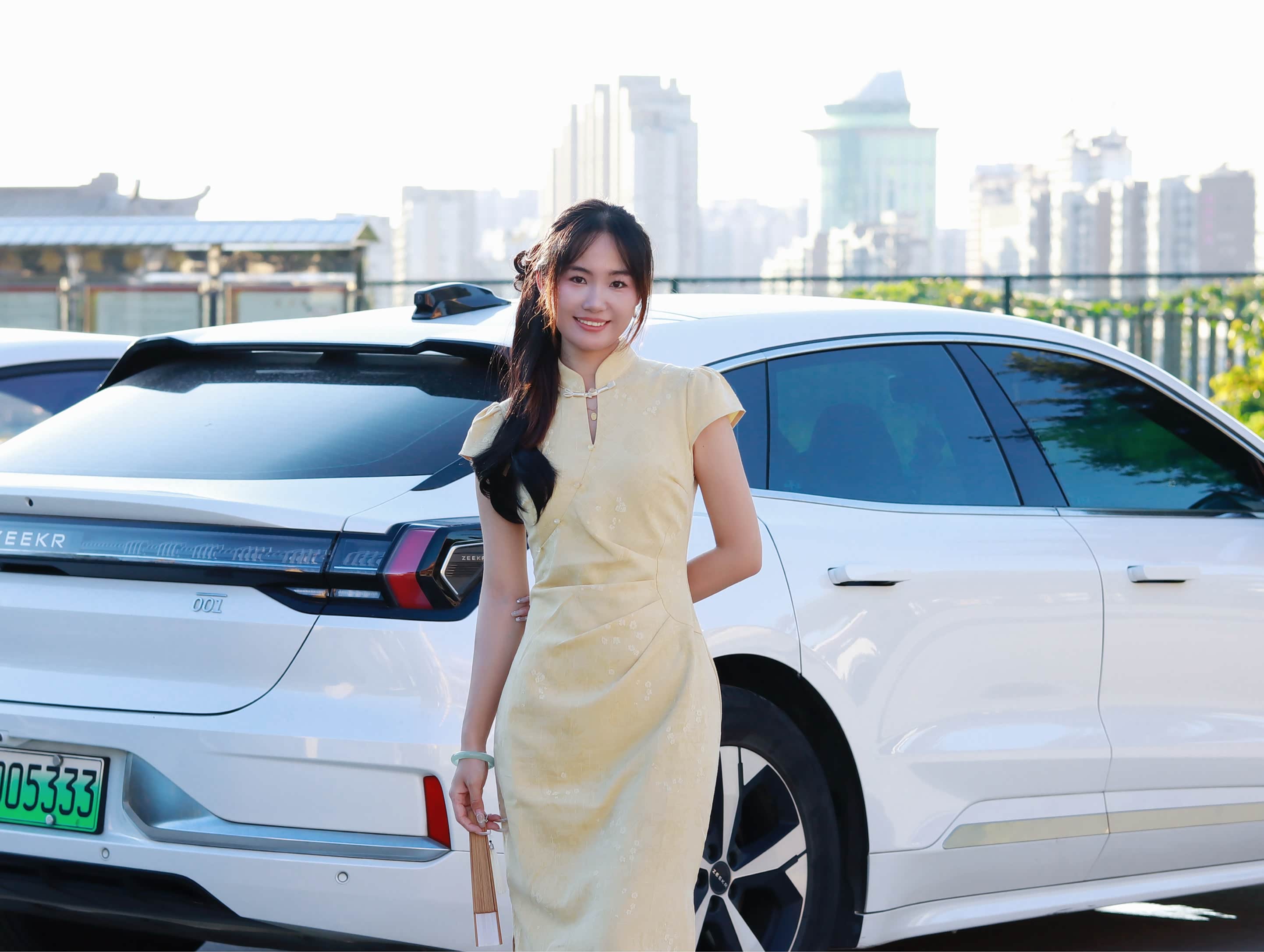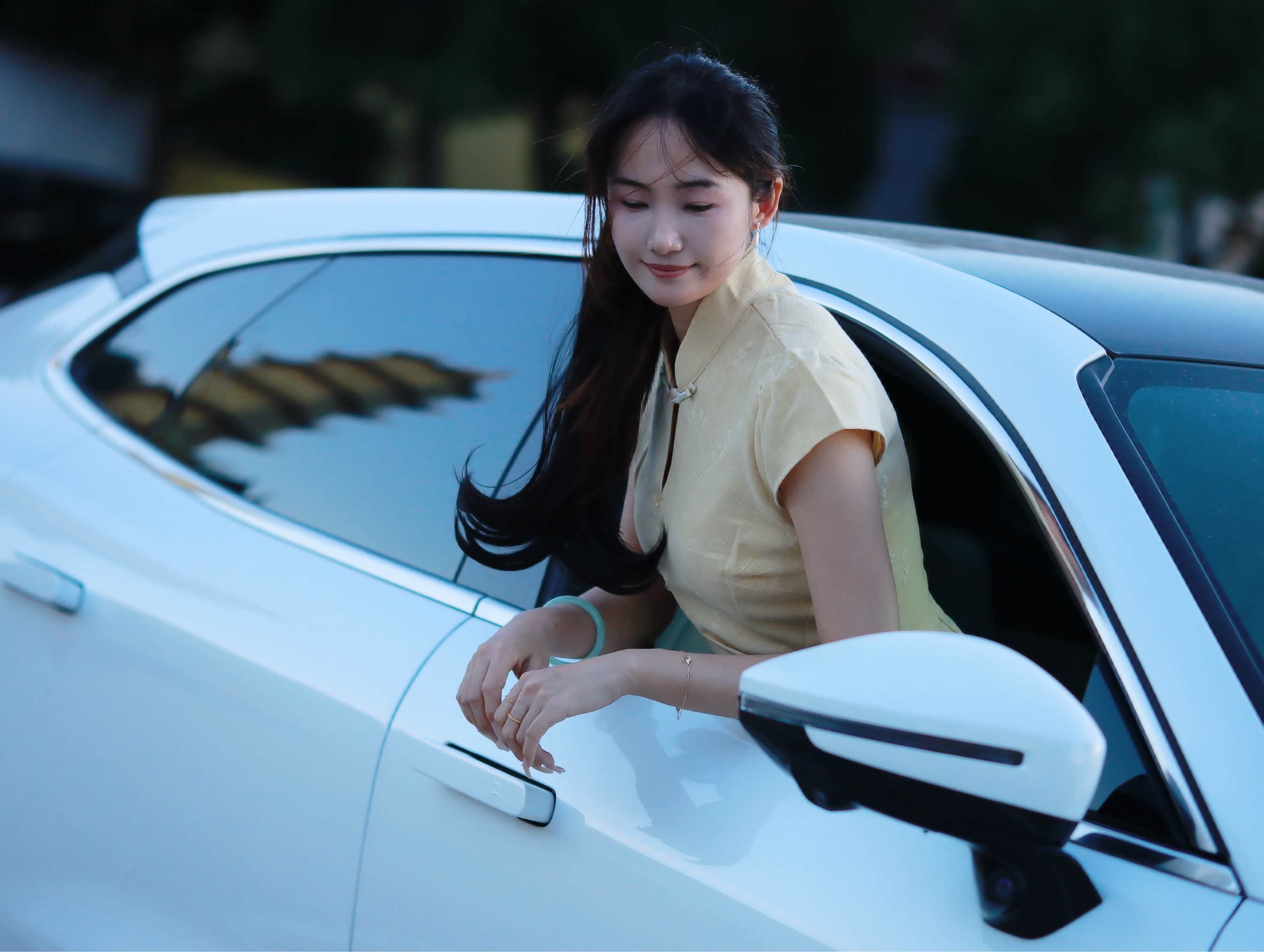 2、想要显腿长?一定要试试轻轻靠在车门边,一条腿微微往前伸,身体稍微侧一点。女生都懂,这个姿势yyds!秒变大长腿~