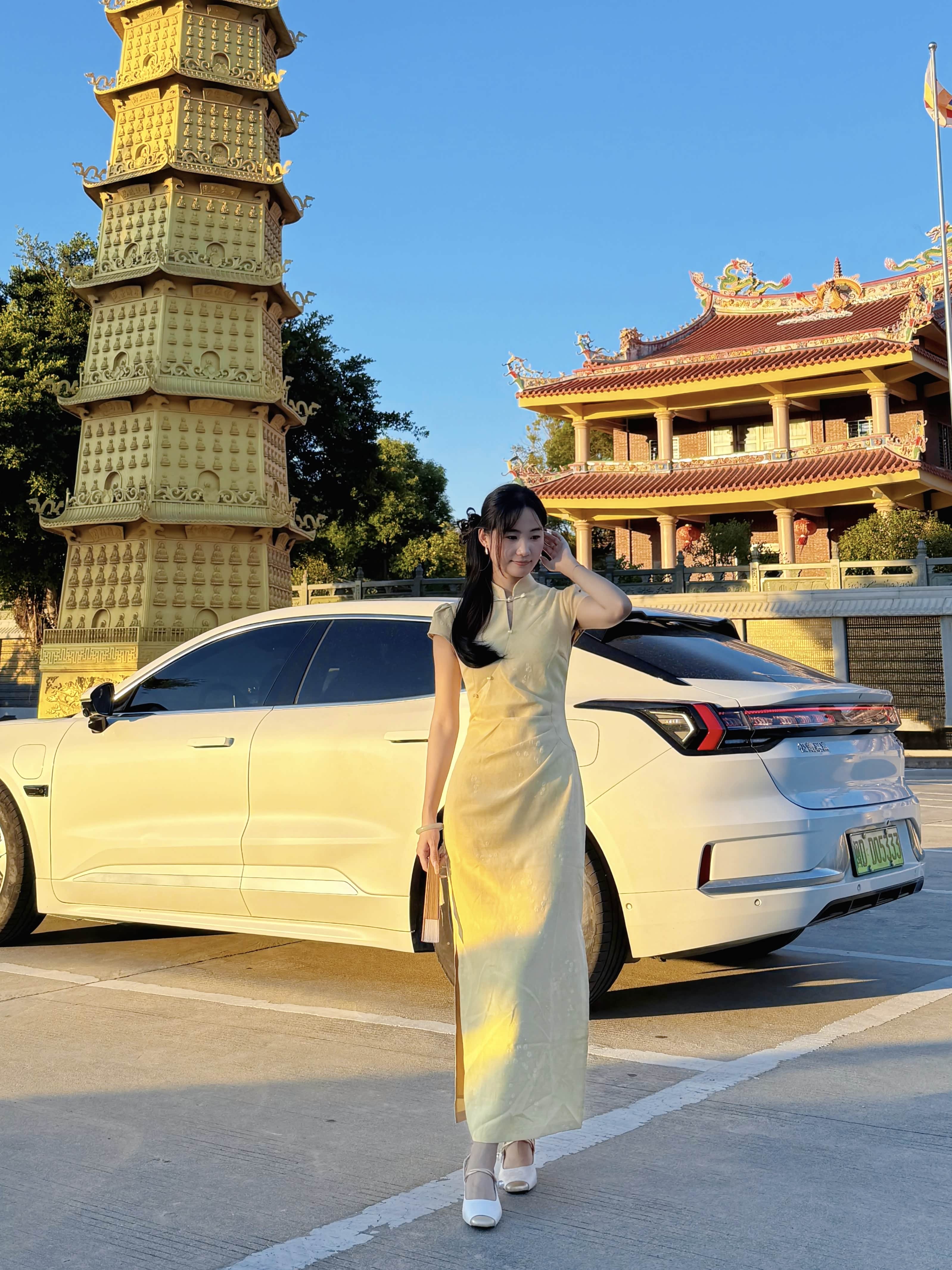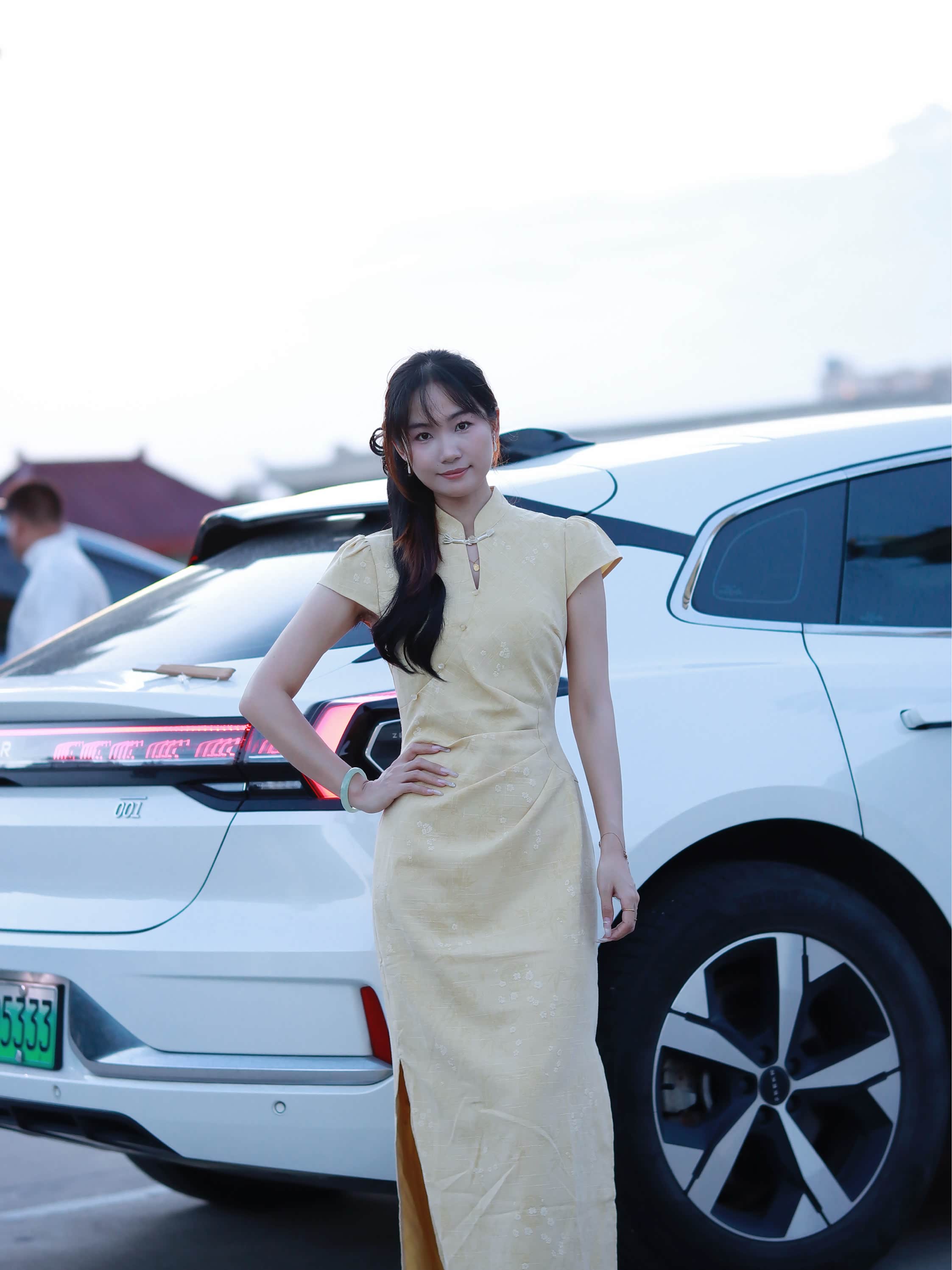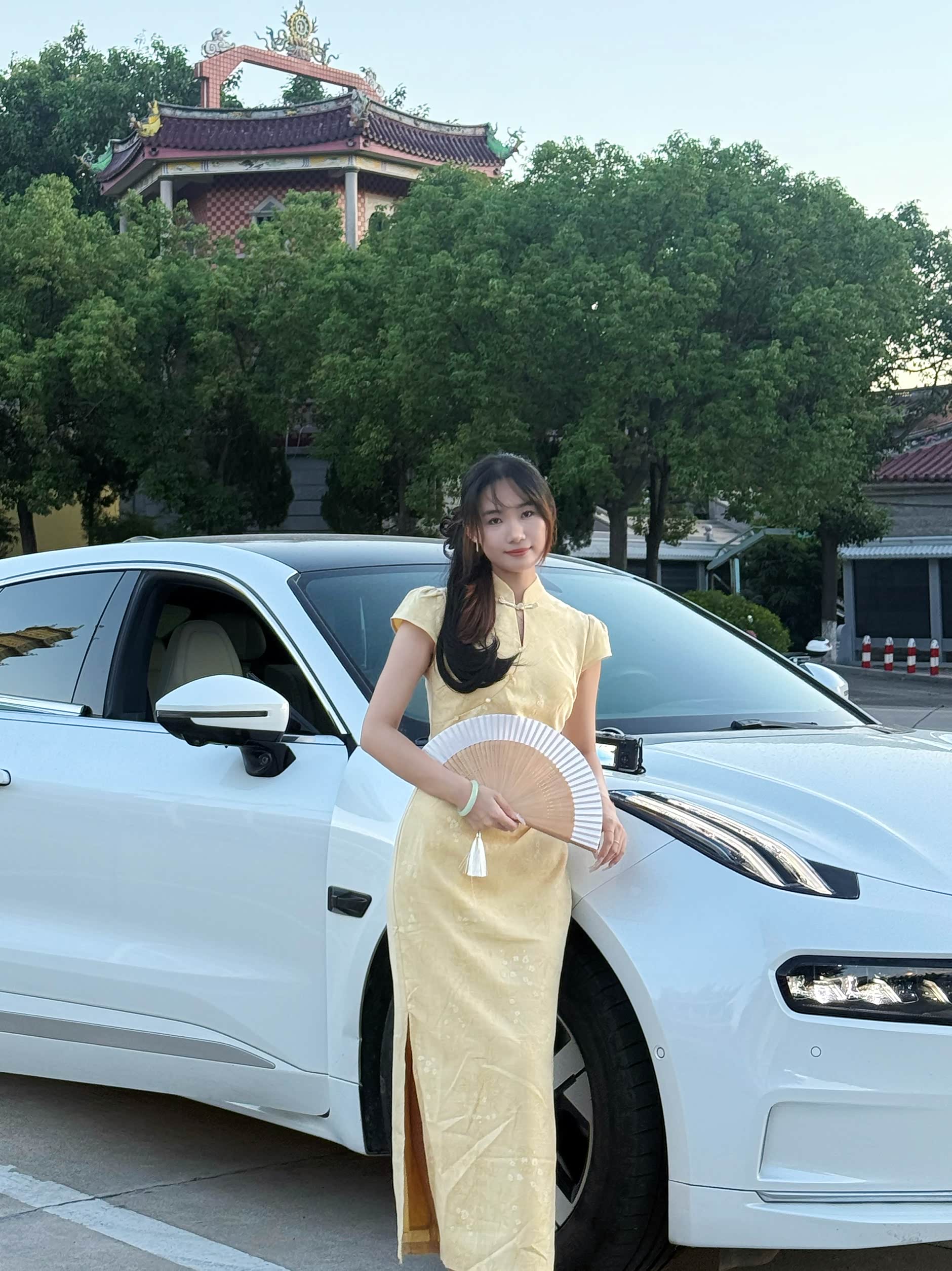 今天穿了一件鹅黄色的旗袍,第一次尝试这种古典风格,整个人都显得很温柔。