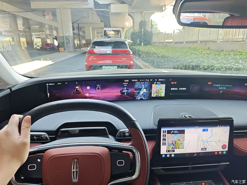 我觉得行驶中最大优势是安静,一方面是美系车隔音好,还有一方面混动起步没有发动机轰转声音,所以车里比较安静。开起来的感觉比较平顺,起步的刹那有电车感,电机起步响应很快,速度起来之后发动机启动,城市里走走停停很平顺,也很省油,销售说日常城市代步的话百公里油耗6-8L,还有看驾驶习惯和路况,对于2.0T中型SUV来说很省了。试驾的时候我觉得中控环抱屏视野很好,开车的时候不用低头就能扫到信息,特别是看导航太爽了,而且这套车机可以语音控制,开车的时候语音就能控制功能,很方便。