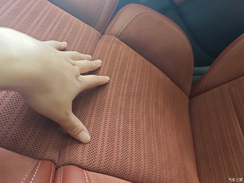 航海家空间真大,而且地板很平整,这一点很多车都做不到,所以从乘坐舒适性来讲,我觉得航海家没毛病,准备买车的可以关注下航海家的乘坐感,而且座椅也很宽大,展车的座椅是翻毛皮材质,贴合性很好,侧翼包裹性也不错。销售说展车和试驾车都是混动尊睿,所以都是翻毛皮,还让我去试乘试驾体验一下动态。