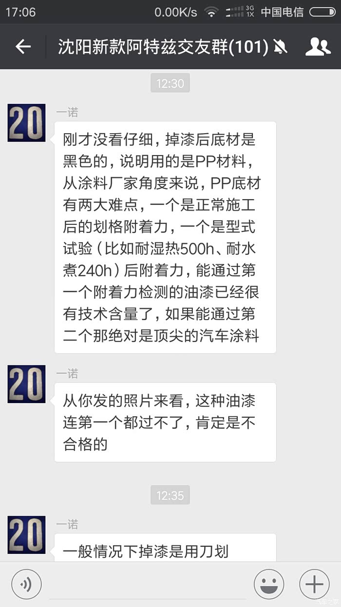 这些塑料件的漆明显是外协厂喷的,边缘部位只扫上一层色漆,底漆、清漆一概没有,摸上去是麻面的,指甲一抠就掉,而且每辆都是如此(不信你看看自己的车),至于原因群里这位搞喷漆的主机厂工程师已经说得很专业了,说车衣粘下来的那纯属扯淡,有清漆的地方根本粘不下来。4S的解决方案就是重喷,索赔这块塑料件也是不带漆的也得4s店现喷,而且后喷漆没法贴车衣。我让4S写了随时重喷的保证并盖章,贴上车衣没有处理,建议贴车衣的朋友这个部件的边缘不要贴。