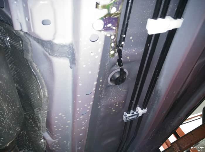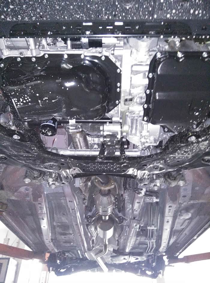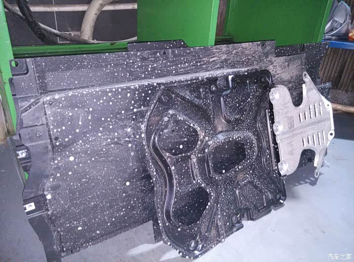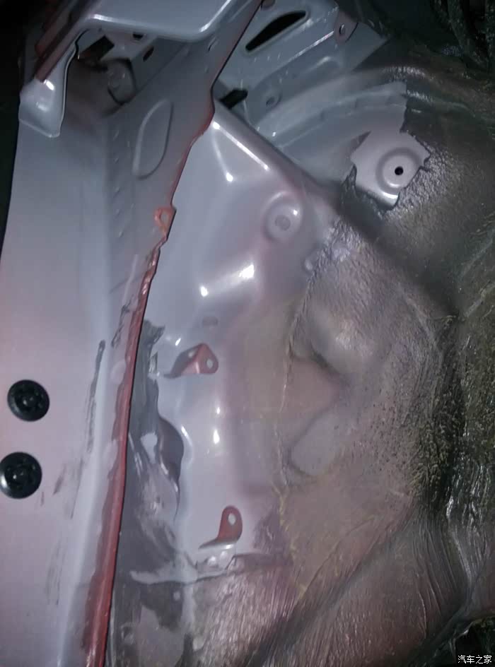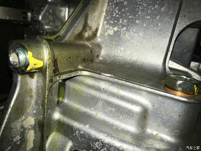 首保时我自己检车发现的,有些工人都不会给你检查车有没有漏油,有也不带告诉你的,我提出后开始给检查,因为部位比较隐秘,不得不把下面图片上的部件拆下来观察,确定是变速箱油,在变速箱出厂加油口的下方,查了一圈确实没有发现漏点,螺丝部位没有漏油痕迹,油渍附近也没有接缝可漏的地方,擦干净观察了1000公里至今干爽,怀疑是出厂加油液拔管时滴在那的,这装配工艺我也是佩服了
