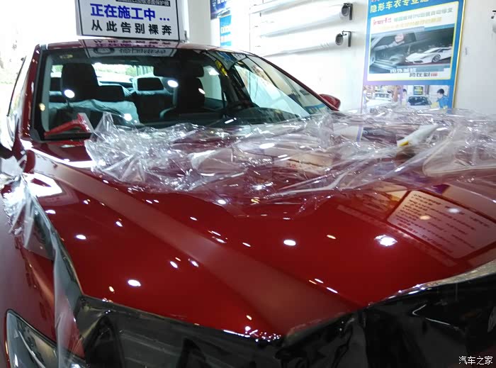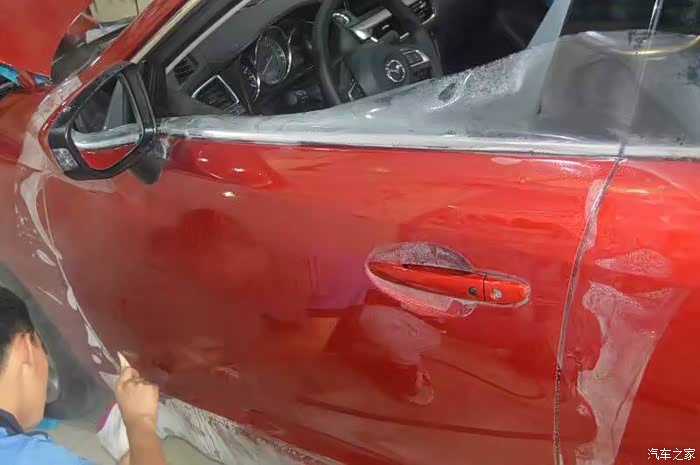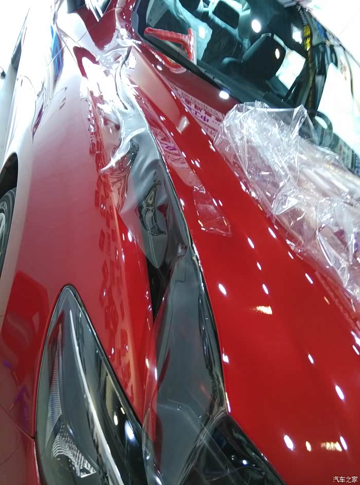3、车衣:亲戚去年买的白色凯美瑞,我去给贴的,一年下来使用效果很好,所以车提出来的第一件事就是去贴车衣,阿特兹的车漆实在是太脆弱了,上高速遇石子避掉漆。车衣没有宣传的那么神奇,PTU 材质,目的就是防小刮小碰,即使钣金变形,凹陷修复就能搞定,省钱省时,而且洗车液不用太精心,随便哪个小店洗,也不用担心抹布脏划伤漆面,几年下来车衣钱就省下来了,卖二手的时候好的漆面也能占不少实惠。需要注意的是第一:能不拆件贴就不拆;第二:车衣本身质量要过关,好的车衣不会把车漆捂变色,几年后揭下来也不会掉胶难处理,韧性比较强,剐蹭不容易破能更好的保护漆面。这东西和贴玻璃膜一样都属于暴力,但也属于一分钱一分货,而且工人的手艺至关重要。建议大家贴的话选3、4千的就可以,真是刮破了,换一块也就2、3百。上万那种又什么进口,又什么自动修复都纯属浪费,土豪随意。对了,贴透明车衣不影响检车上牌。至于什么镀晶镀膜,不管几百的还是几千的都是然并卵,还不如俩月打回蜡来的实在。(帖子里几乎所有的图都是贴车衣照的)