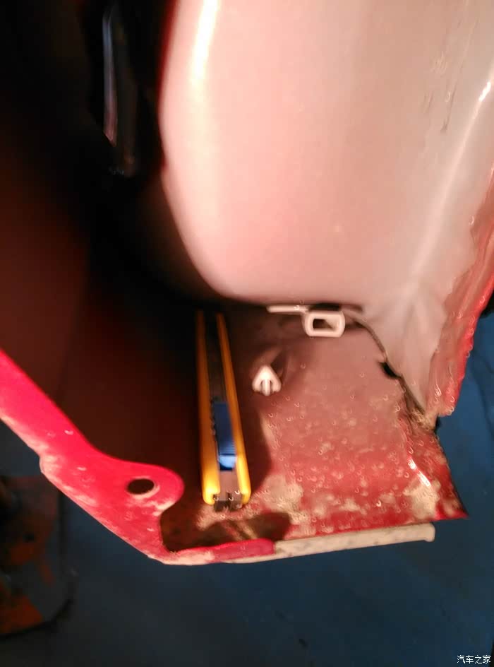 这是让我哭笑不得的,做底盘装甲拆轮拱内时我和师傅都惊呆了,在翼子板的空隙里居然有把美工刀,新车从来就没动过啊,一马你这算买一赠一么,医生做手术剪子丢肚子里的感觉有没有