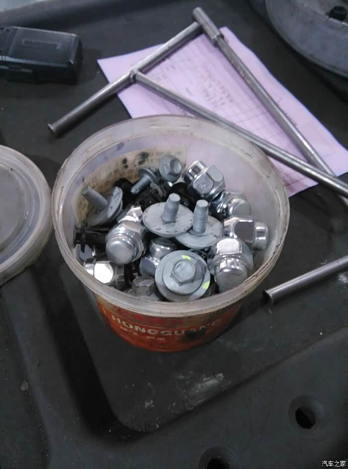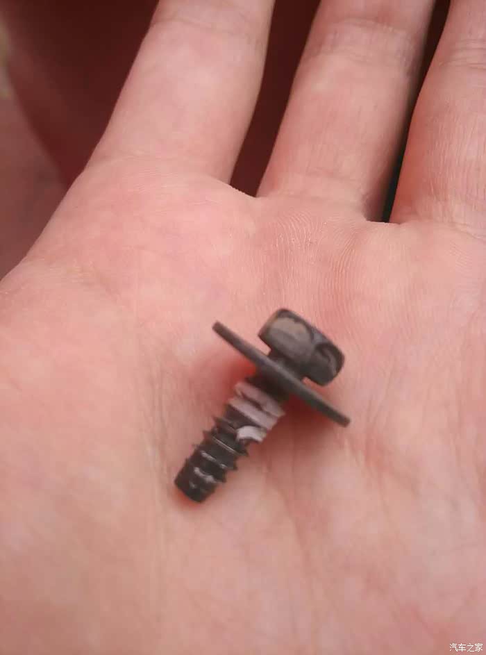 有一天上车前发现了地上这颗螺丝,一看好家伙挡泥板上的,捡起来一看好家伙脱扣的,去4S换了个拆车的塑料螺母完美解决