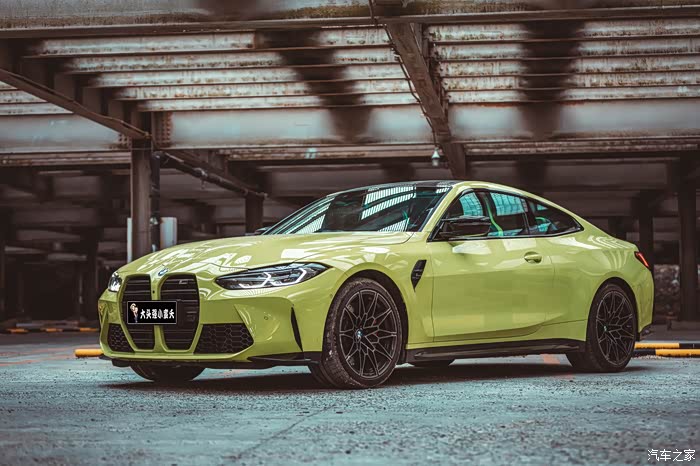 接下来是我们本期的最帅的轿跑出场 宝马M4 雷霆版 柠檬黄 超大双肾的辨识度是不是超级带感!