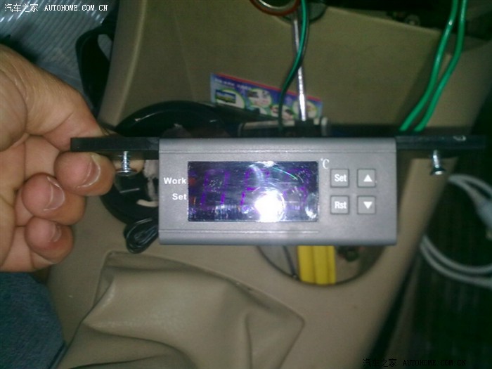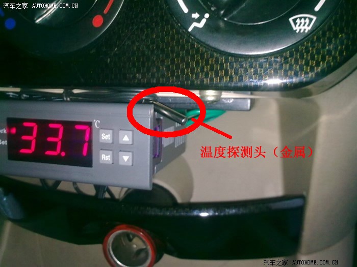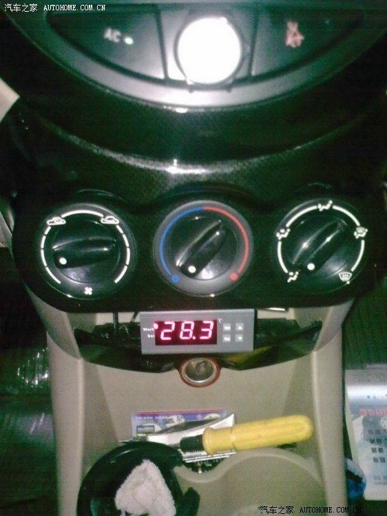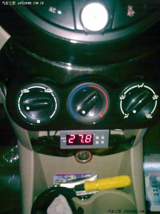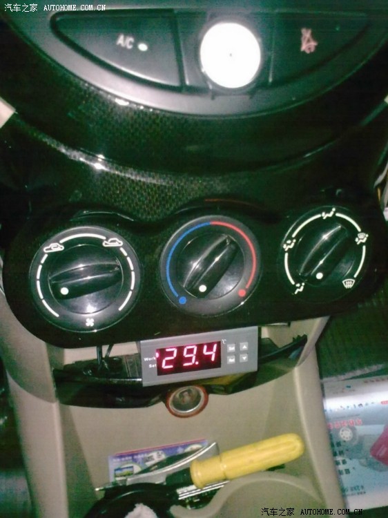 1,温控器本身是比较小的,在熊猫车上很难找到合适的位置,我比画了半天,决定装在风机开关下面这个位置,整体看起来也比较美观。