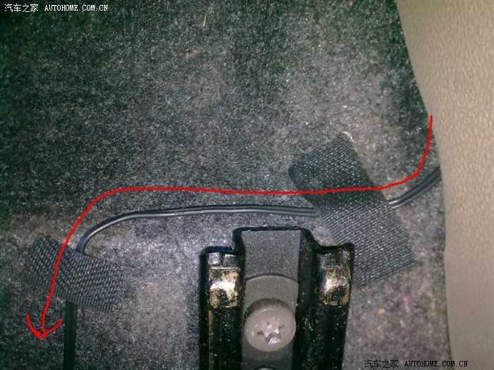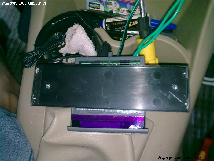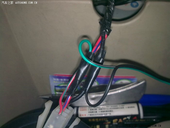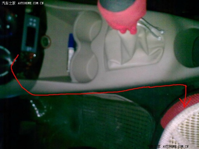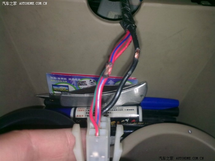 4条线从这个位置,打个孔从中控里面穿到点烟器上方的格子里: