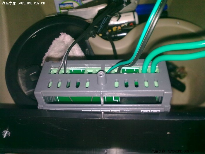 把点烟器归位。下图是温控器背后的接线图。从左到右分别是:温度探头、12V电源线、AC开关线: