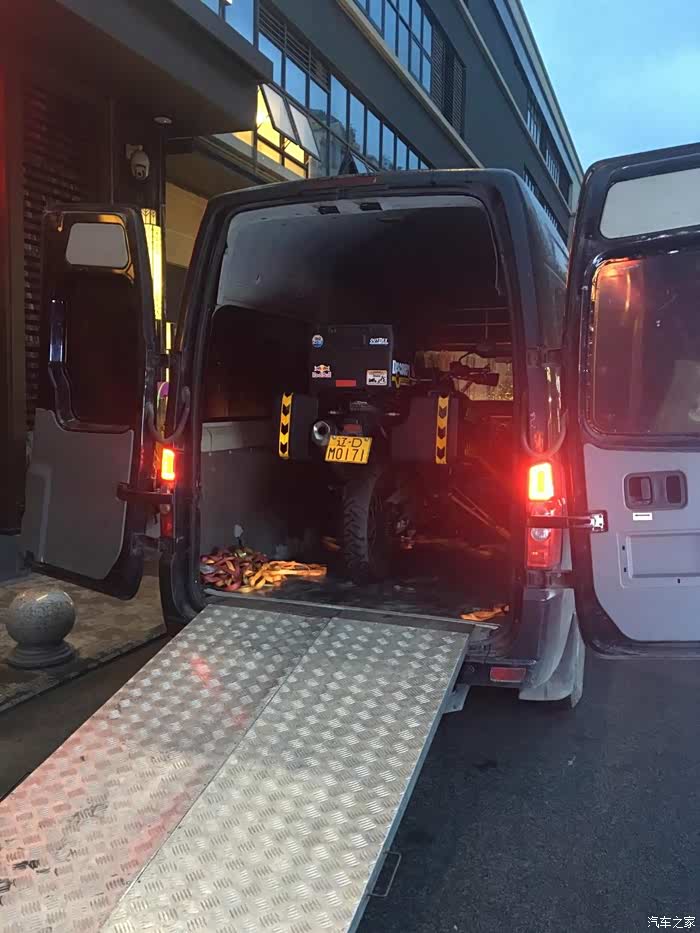 我把车子交给板车师傅,板车师傅将摩托车固定在板车上,而后离开,将我的车子拉倒厦门市的一个物流点,然后在哪里打木箱,发走。