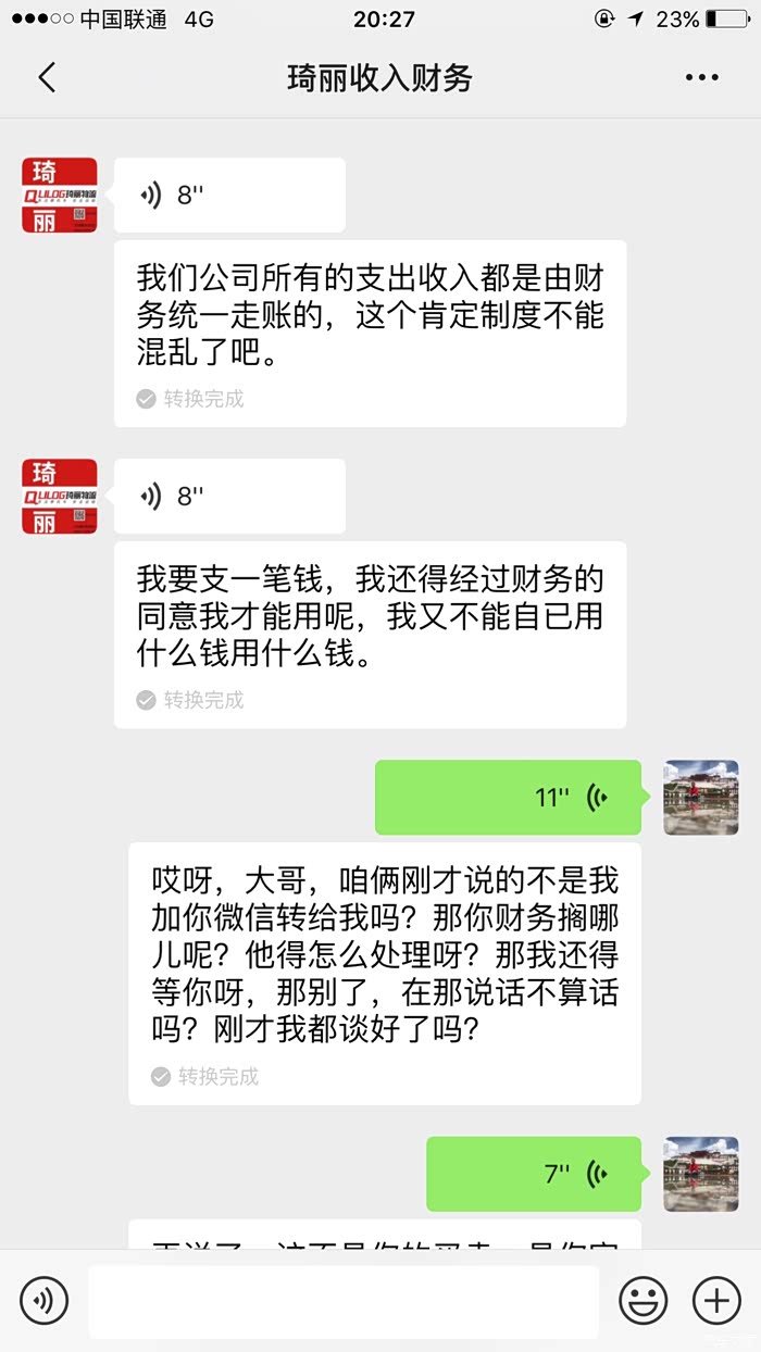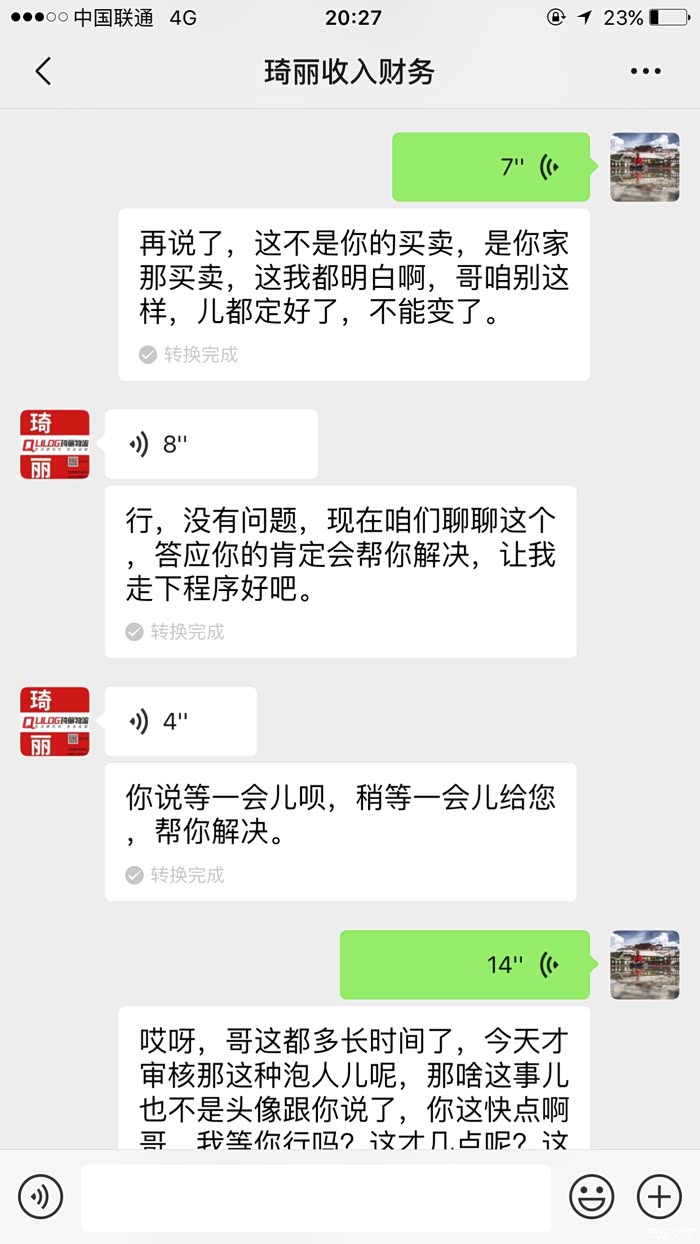 2020年4月10日下午6时,我多次拨打财务电话,均无人接听或者直接挂断,当我更换手机号码时,财务人员接了我的电话。我问琦丽财务人员何时打款?对方称“等这边有新客户交款我就赔付给你(言外之意用其他客户的钱给我赔付),如果晚上没有客户进款,4月11日我个人垫付给你”