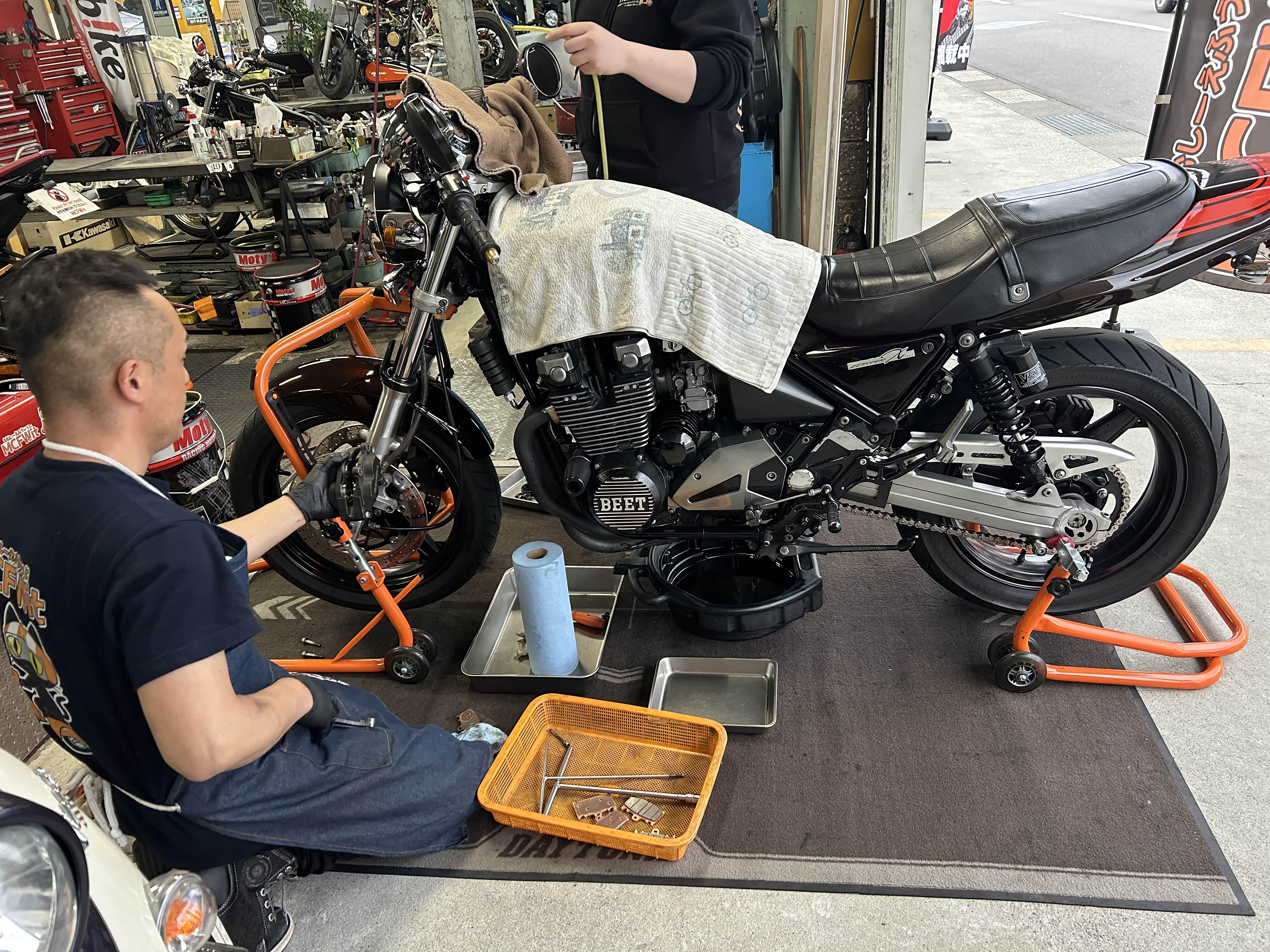 到老朋友户仓君那里换一下机油和刹车片。