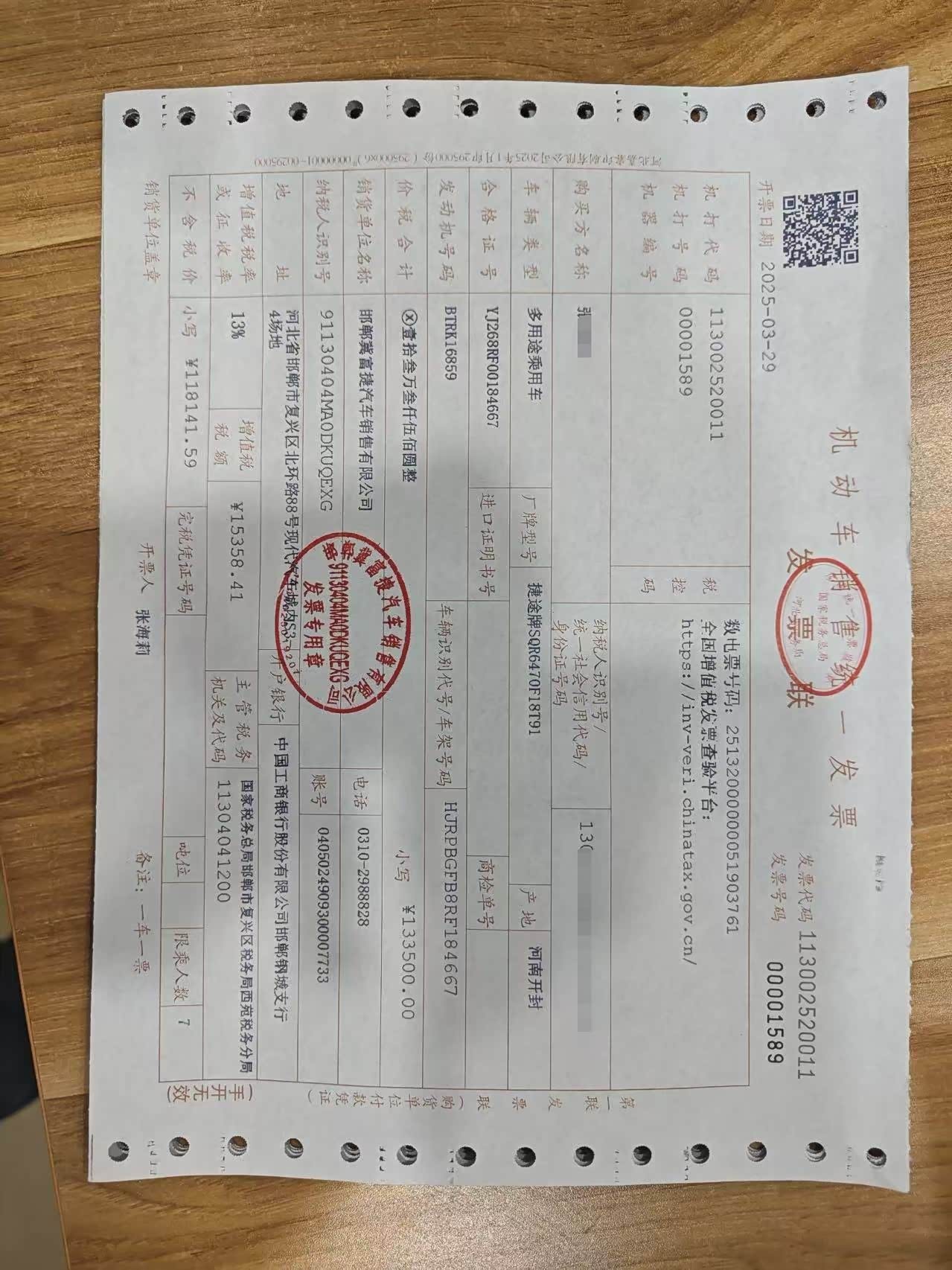 这车报价13.98万,发票写的却是13.35万,旧车抵了4万,保险全险大概3000多,上牌费500,购置税15358元,感觉有种被坑的感觉