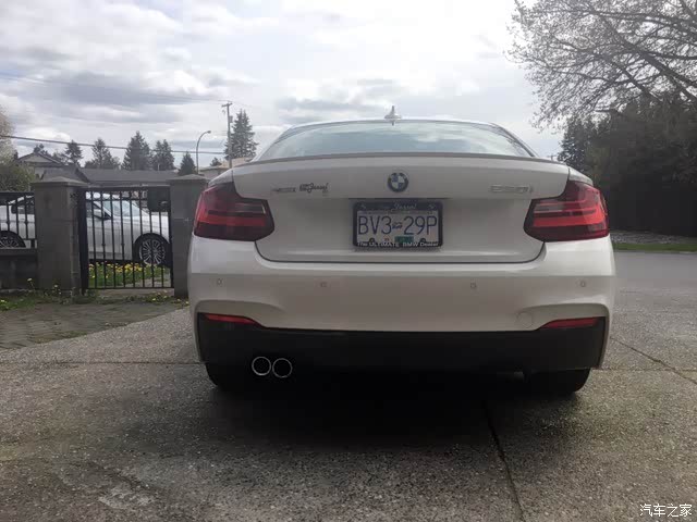 特意为了发这个淘宝买了个汽车之家账号,因为人在加拿大温哥华,汽车之家验证不了。本人现在在温哥华读大学,业余在朋友公司兼职坐办公室,之前也送过外卖,在餐馆洗碗帮厨,苦活累活也都干过了。挣点小钱养养车,供供车,不是二代,全凭自己双手赚钱。之前开舅舅的2014款320,年初的时候宝马说有促销,贷款利率很低,加上我又是老客户,然后去审核看车,本来想买4系,但是觉得太大了开起来没那么爽。后来4s又给了一辆敞篷m240让试驾,感觉动力相当充沛。但是由于温哥华的高油价,实在不想花太多钱加油。然后就提了17款的230i 四驱版。价格吗大概5万加币出头,贷款的话每个月还500多,没有首付,所以很便宜!(加币汇率大概兑人民币1:5)高功率b48 248匹,冷车时有哒哒哒的声音,不过比之前的320的好多了,但是油少的时候还是会抖。0-100加速由于是四驱的,官方给的5.1秒,自己亲测应该能进四秒。动力足够平时路上撒野了,比大部分钢炮都要强。下面看图咯