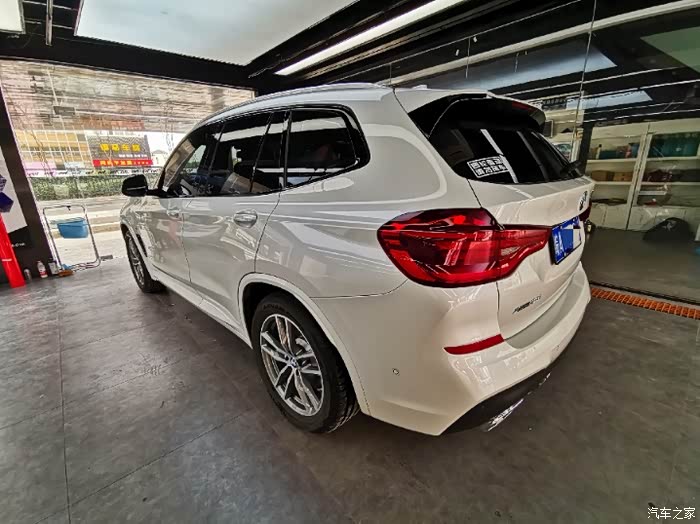 今天周末,对爱车进行了一次全面的沐浴,以及对做了个护理,效果还是很不错,跟刚提车出来的感觉一样,还是那么的有内涵有气质。这是刚洗完白白的样子,还在洗车工位上,情不自禁的来了几张自拍,运动套件看上去很凶悍。目前就是对这个轮毂有点不是很满意,正在打算更换顶配的轮毂搭配模式,进行前后配模式,就是前胎245/45R20,后胎275/40R20的搭配模式。拆下来的原车轮毂有没有车友需要?19寸245胎可以用的。擦干净后,来到护理工位。有没有亮晶晶的感觉?这张完美的表现了新X3的腰线,还是那么的性感,这高跷的臀部,立体切割的尾灯,提现出了这隐藏的无穷力量!同上表达,右侧的写真。本来正面拍臀部有点不礼貌,...