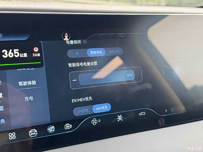 开V9出去我最放心的是续航,出发前加满一箱油,充满电,续航有1300km,来回跑一趟完全够用,也不用中途找加油站,进服务区顶多是上个厕所,想省点钱就顺带补个电,快充18分钟也就去个厕所、抽一根的时间,满电续航是200km,能源模式在中控上可以很方便切换。